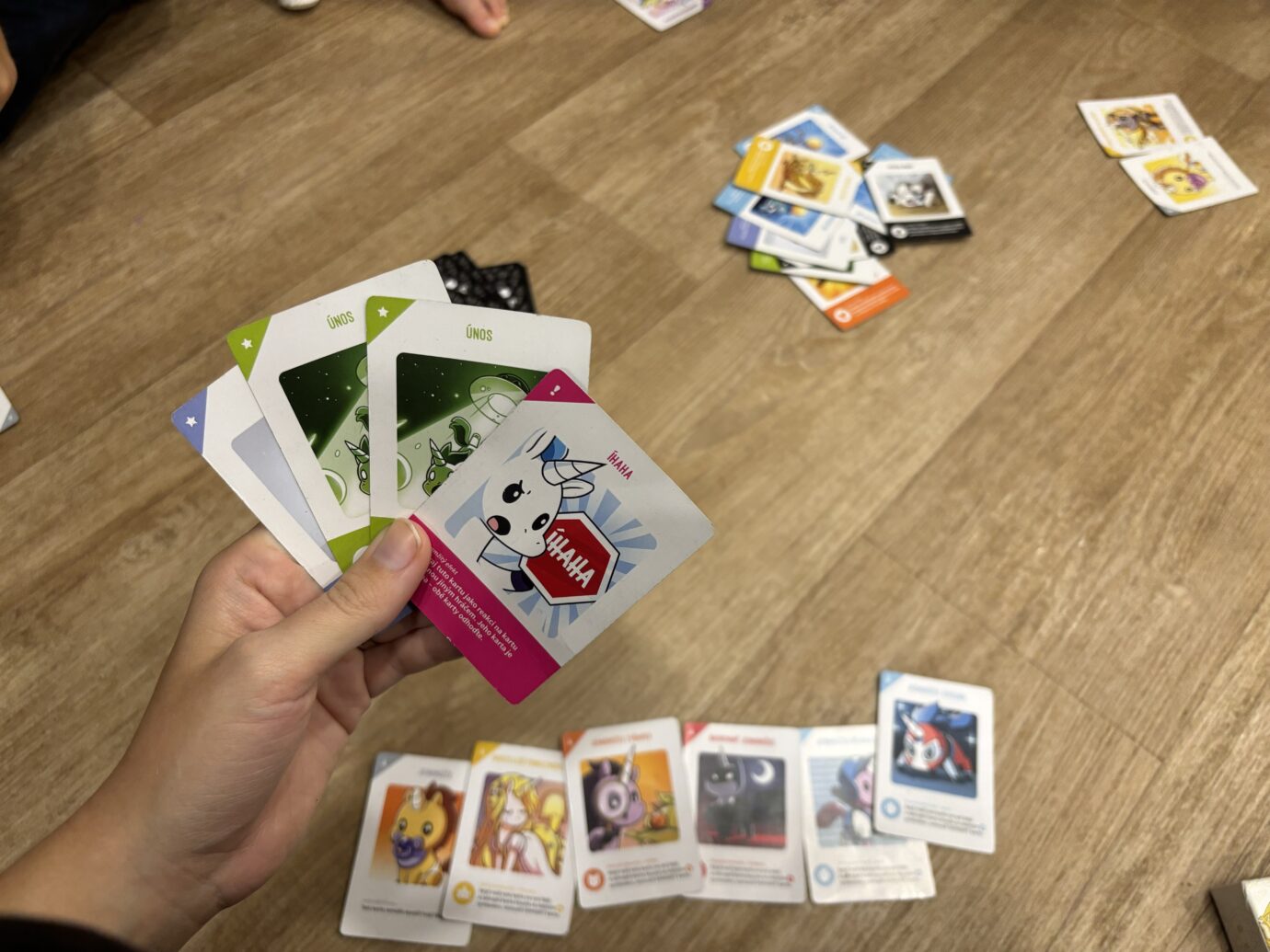 Labilní jednorožci je karetní hra, kterou jsem koupila především kvůli tématu. A tím jsou jednorožci, které naše holky milují. Cíl hry je, abyste nasbírali 7 jednorožců do své stáje. Se spoluhráči hrajete ale proti sobě a můžete si škodit. Brát si pomocí akčních karet jednorožce ze stájí, měnit si karty a podobně. Tahle hra nás opravdu hodně baví, grafika je krásná a jednorožci jsou vážně nápadití. Existuje i verze pro dospělé, ale ta je vážně 18+.