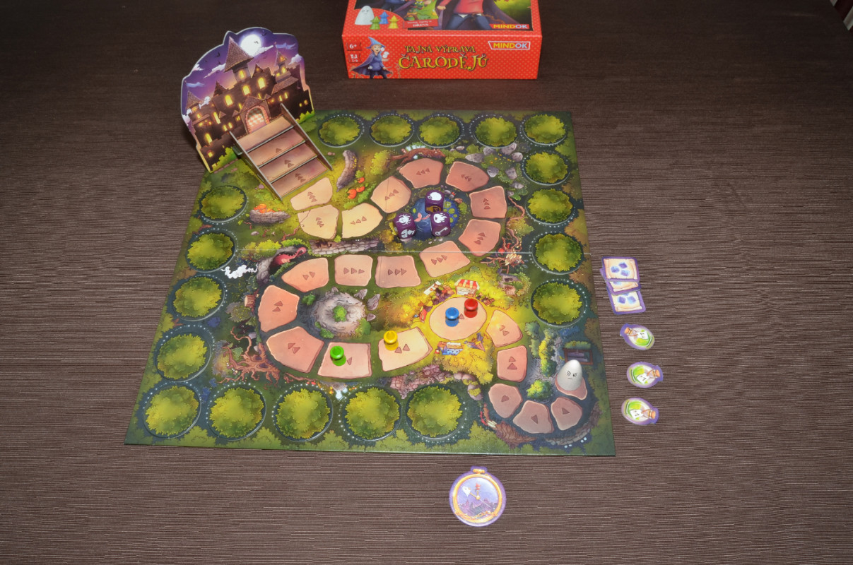 Tajná výprava čarodějů je pro změnu kooperativní hra. Hráči mají dohromady za úkol dostat se všichni včas z tržiště do školy čar a kouzel. Musíte si ale pospíšit, aby vás nedoběhl Bludovít. To je duch, který celou cestu putuje za vámi. Hra je na principu pexesa a procvičí vaši paměť. Vždy když hodíte kostkami, ukáže se vám, jaké kartičky máte odhalit – ty si musíte pamatovat. Kolik v tahu získáte bodů, o tolik políček jdete vpřed. Bludovít jde za vámi po každém kole. Hra je kooperativní v tom, že si radíte při odkrývání pexesových kartiček a jste tak spolu proti Bludovítovi. Při cestě vám mohou pomoci kouzelné lektvary. Tato hra je pro děti od 6 let. Hrajeme také od 5 let.