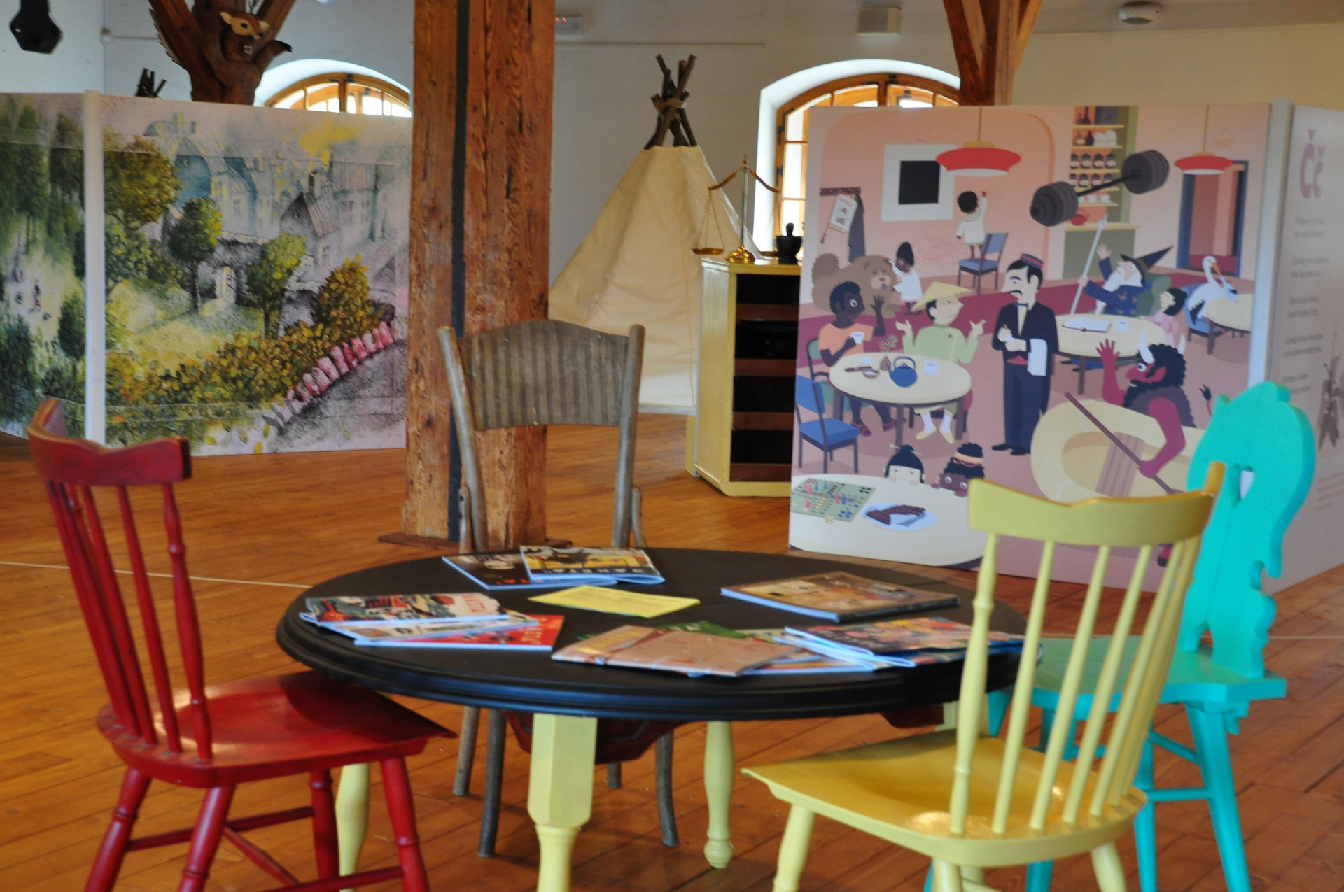 - Přirozený prostor pro děti, kde děti svobodně a intuitivně objevují svět obrazových knih – výstava, která není zavřená ve vitrínách,