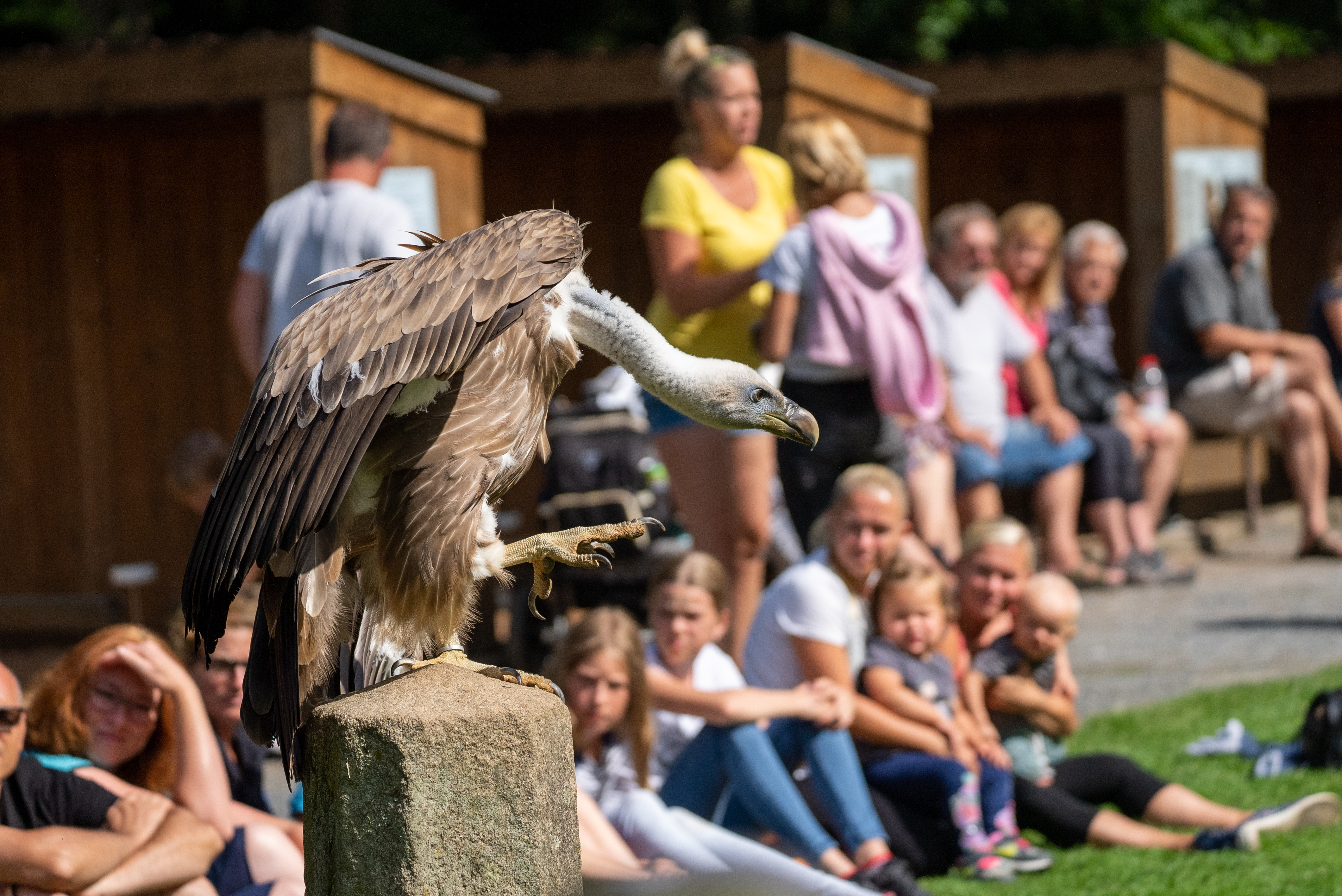 Velkým zážitkem jsou pravidelné ukázky dravců a sov s odborným výkladem. Oblíbené je také komentované krmení bílých jelenů. Program probíhá vždy ve 12:00 a 15:30.