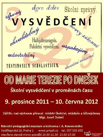 Výstava „Od Marie Terezie po dnešek – Školní vysvědčení v proměnách času“ je završením dvouletého projektu Nejstarší a nejzajímavější vysvědčení ve světle dějin školství.