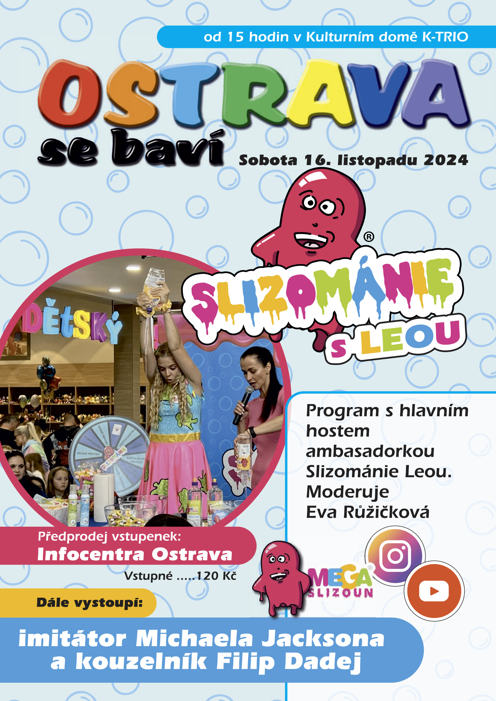 18. ročník programu přinese ukázku stolního tenisu, vystoupení kouzelníka Filipa Dadeje, který se svou Mikromagií již projel kus světa a dokáže překvapit i diváky v sále. Vynikající imitátor Michaela Jacksona, který již dlouhé roky udržuje nastavenou laťku skvělého tanečníka a zpěváka a rozhodně se máte na co těšit. Poprvé na naší akci zavítá youtuberka Lea se svou Slizománií, která dokáže vtáhnout a zaujmout dětského diváka, a tak věříme, že závěr programu bude tím pravým vyvrcholením.