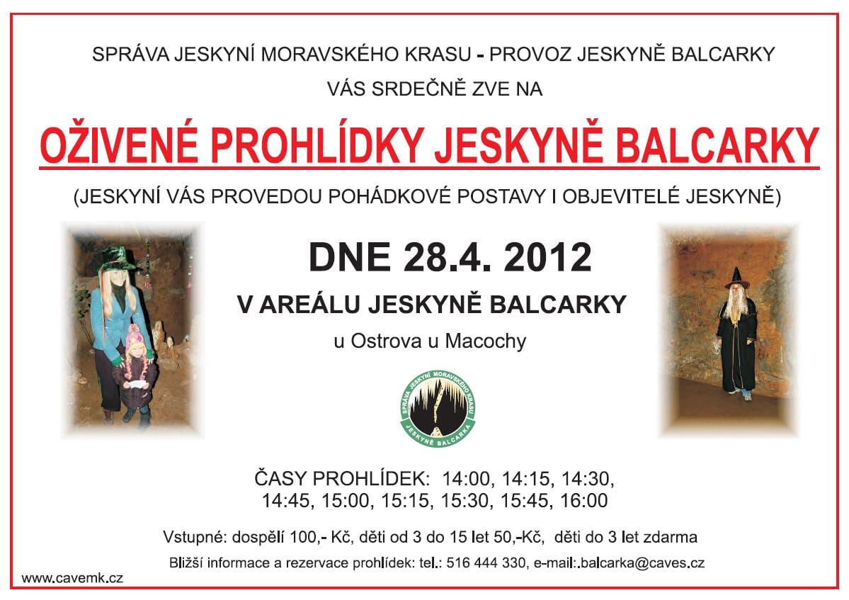 Druhý ročník oblíbených Oživených prohlídek jeskyně Balcarky se koná dne 28.4.2012.