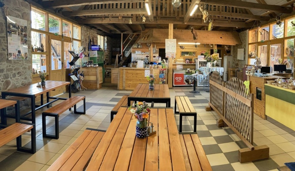Obchůdek a občerstvení – možnost zakoupit originální výrobky vytvořené zaměstnanci parku se speciálními potřebami.