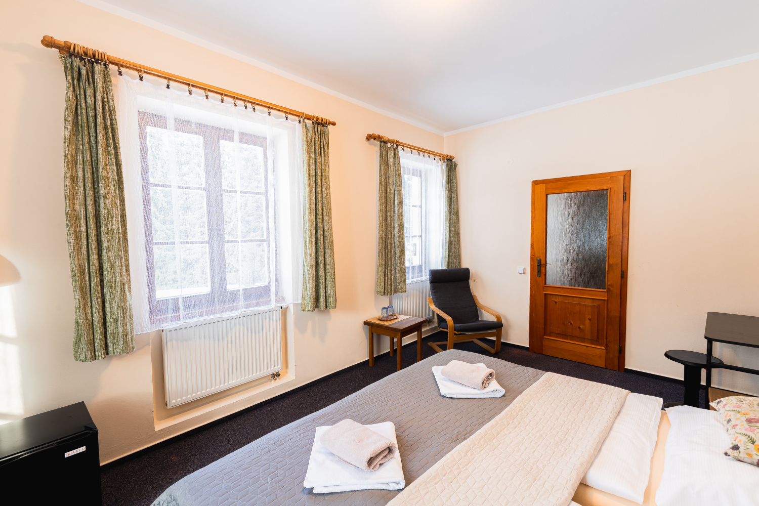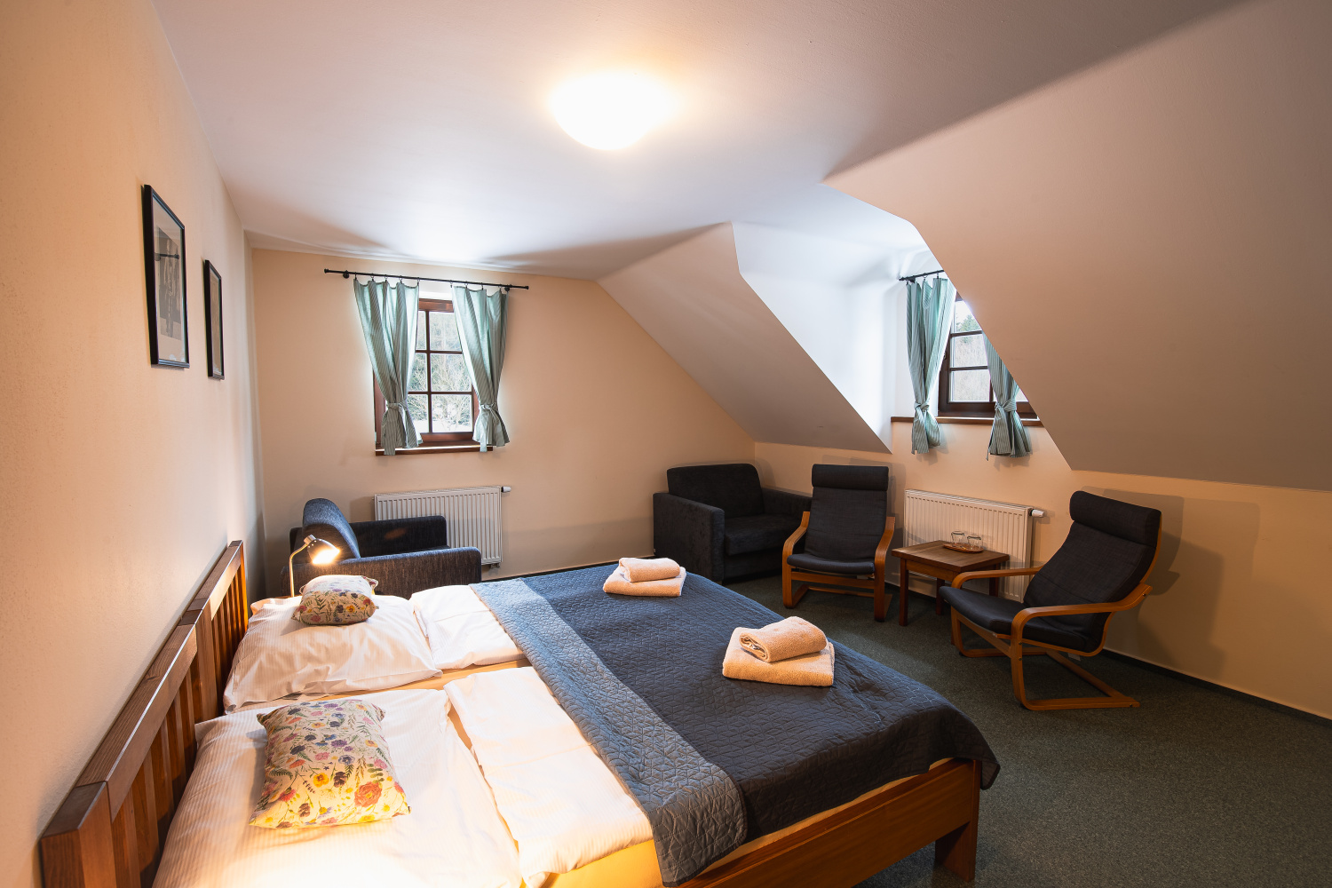 V penzionu najdete pohodlné ubytování pro jednotlivé turisty i pro rodiny s dětmi, venkovní posezení na zahrádce, která navazuje na louku s ovocným sadem. Stylová restaurace s rozmanitou nabídkou výborných jídel vám jistě přijde vhod.