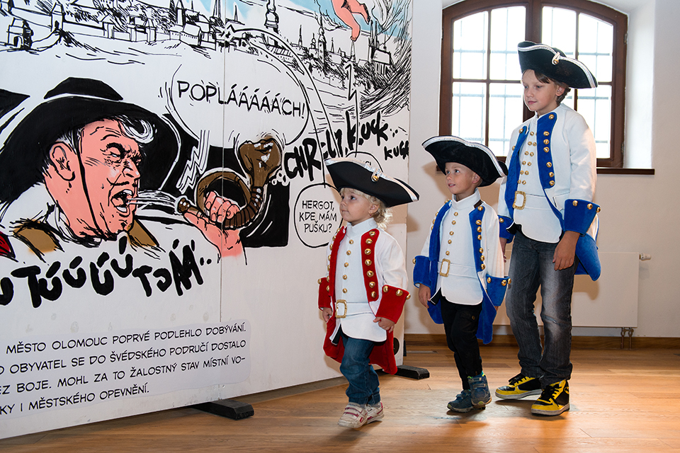 Vyberte si svou historickou uniformu a vydejte se do doby, kdy se v Olomouci psaly dějiny. Akční a erudovaní animátoři vám prozradí vše o životě v Pevnosti v dobách, kdy ještě nebyla útočištěm pro poznání, ale pro dělostřelectvo. V hlavních rolích zdravotnictví, stavebnictví, balistika a kartografie ve víru nevyzpytatelného 18. století. Ústřední dominantou expozice je vtipný komiksový příběh na 12 velkoformátových panelech. Vypráví o vzniku impozantní olomoucké pevnosti a poutavě shrnuje události, v nichž figuruje sama Marie Terezie nebo císař František Josef I.