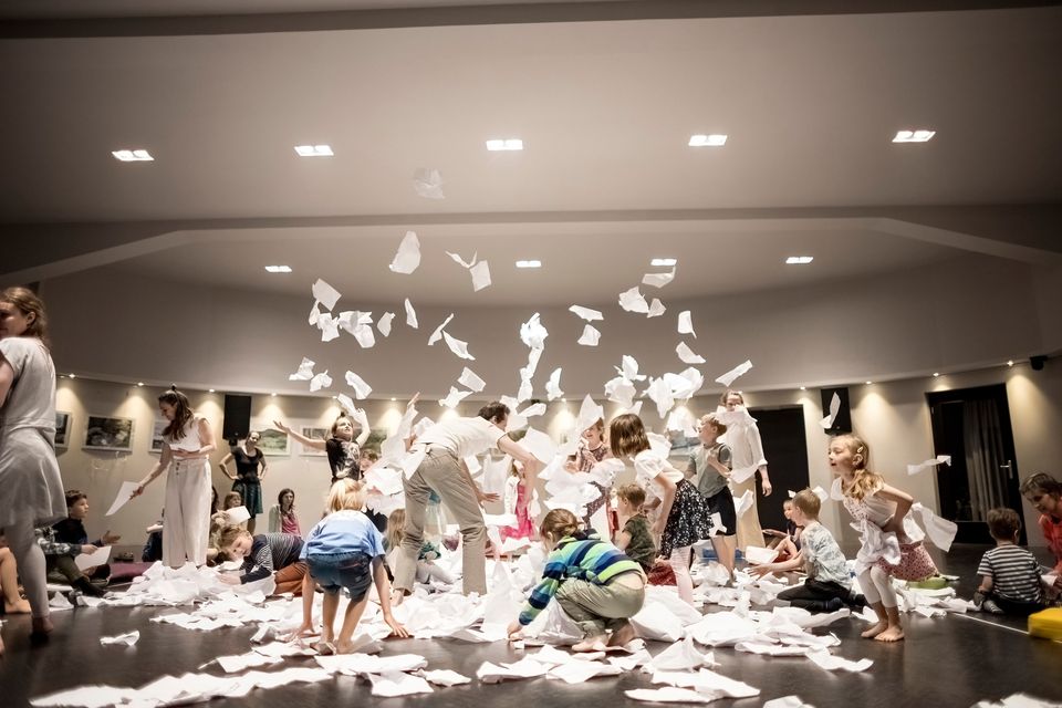 Interaktivní hravé představení pro tanečníky, hudebníky, děti a tisíc listů papíru.