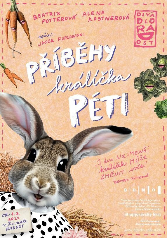 Představení na motivy příběhů jedné z nejslavnějších světových autorek dětské literatury Beatrix Potterové. Králíček Péťa a jeho dobrodružství patří nejenom ve své domovině, Velké Británii, ke klasice a zlatému fondu pohádek.
