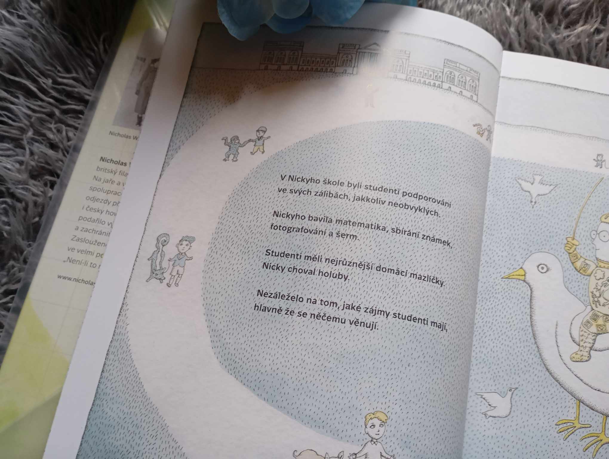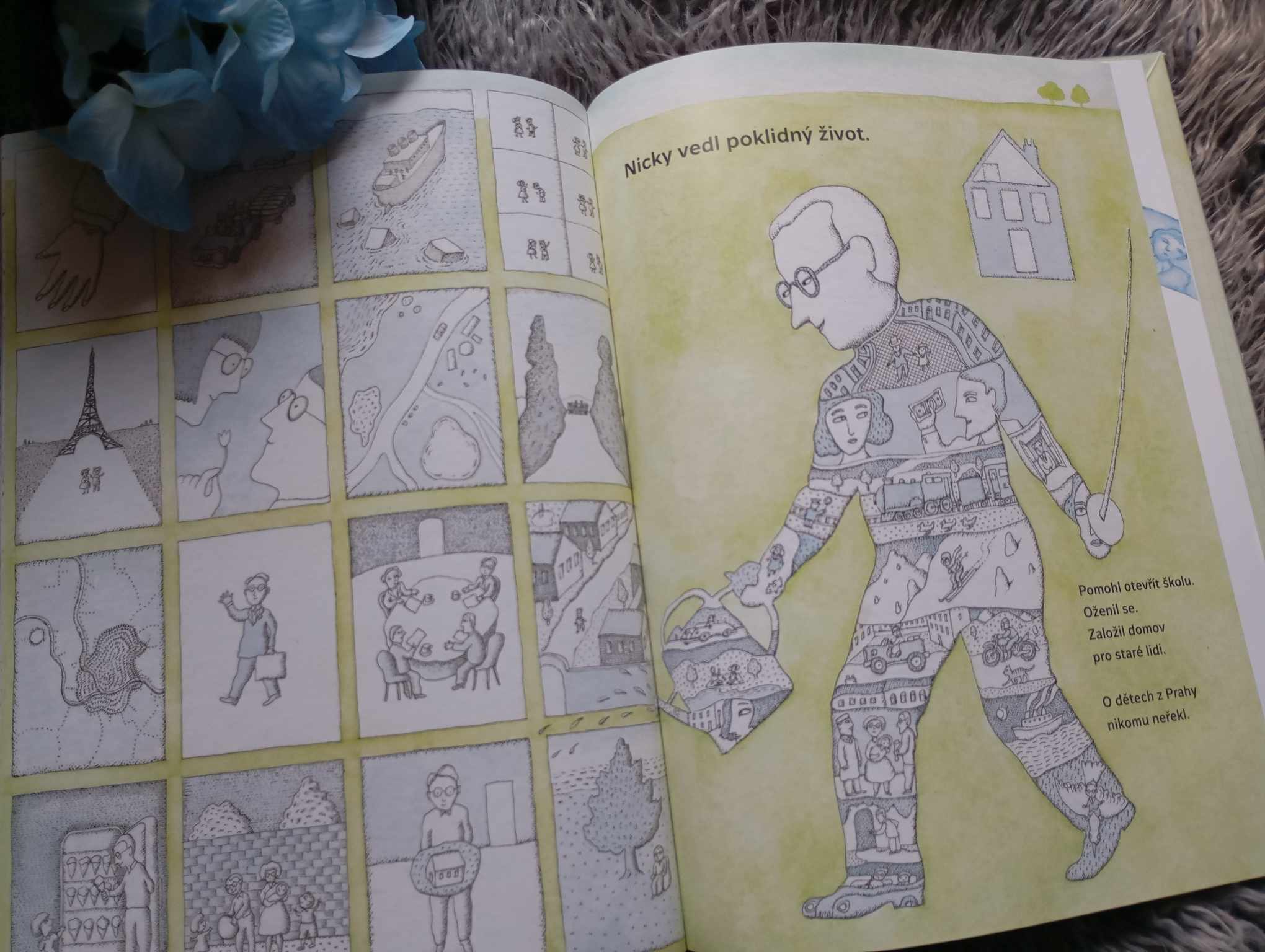 Jak už jsem naznačila, hlavními hrdiny této knížky pro děti je Nicholas Winton a jedno z jeho zachráněných dětí – Věrka. Autor píše krátké věty a na každé dvojstraně máme jen několik vět či odstavců. Vše ostatní krásně vysvětlí dobře volené obrázky.