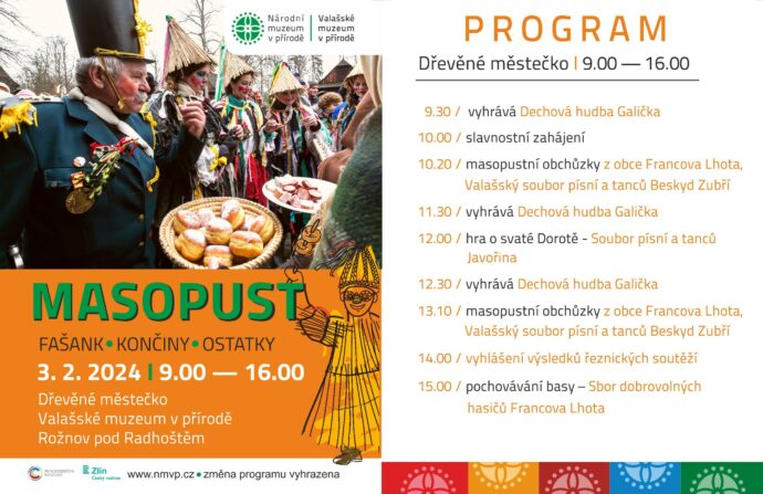 Rožnov pod Radhoštěm – v sobotu 3. února 2024 zavoní areálem Dřevěného městečka řeznické speciality a propukne masopustní veselí.