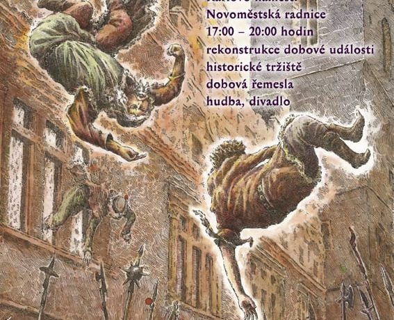 Na 19:00 se chystá podívaná, při níž tuhne krev v žilách. Rekonstrukce dobových událostí nás přenese do roku 1419. Podobně jako tehdy přitáhne k Novoměstské radnici průvod vedený Janem Želivským a bude požadovat propuštění vězněných stoupenců přijímání podobojí. I tentokrát dojde k potyčce mezi přívrženci Želivského a konšely, kteří metáním předmětů z oken radnice rozvášní průvod natolik, že dav vtrhne na radnici a vyhází konšely z oken. Defenestrace z roku 1419 byla událostí krvavou. Během její současné rekonstrukce 31. července 2009 nás však čeká především napětí a dobrá zábava, při které zažijete i odvážné skoky z oken radnice.