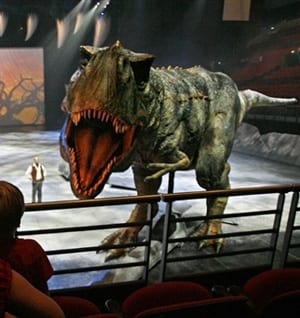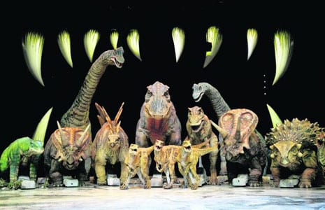 PUTOVÁNÍ S DINOSAURY – Velkolepou show Vám do České republiky přiváží BBC Worldwide ve spolupráci s australskou produkční společností The Creature Production Company, v jejímž čele stojí generální ředitelka Carmen Pavlovic. Ta říká: „Seriál televize BBC byl výborným spojením zvláštních efektů a zábavně podaných infor- mací. Abychom tuto televizní událost převedli do třetího rozměru a na jevišti mohli představit ještěry v životní velikosti, vytvořili jsme za 12,5 milionu liber podívanou tak obrovskou, že se může vejít pouze do arén.„ Show Putování s dinosaury, která je mezníkem na poli rodinné zábavy, vidělo po ce- lém světě více než 7 milionů lidí v 206 městech. Časopis Pollstar ji zařadil na 4. místo v anketě “100 Worldwide Tours”. Tento fenomenální světový úspěch je připisován dlouholeté průkopnické práci a vášni produkčního týmu, který večer co večer oživuje 20 ještěrů ve skutečné velikosti. Jedná se o technologický počin epických rozměrů.