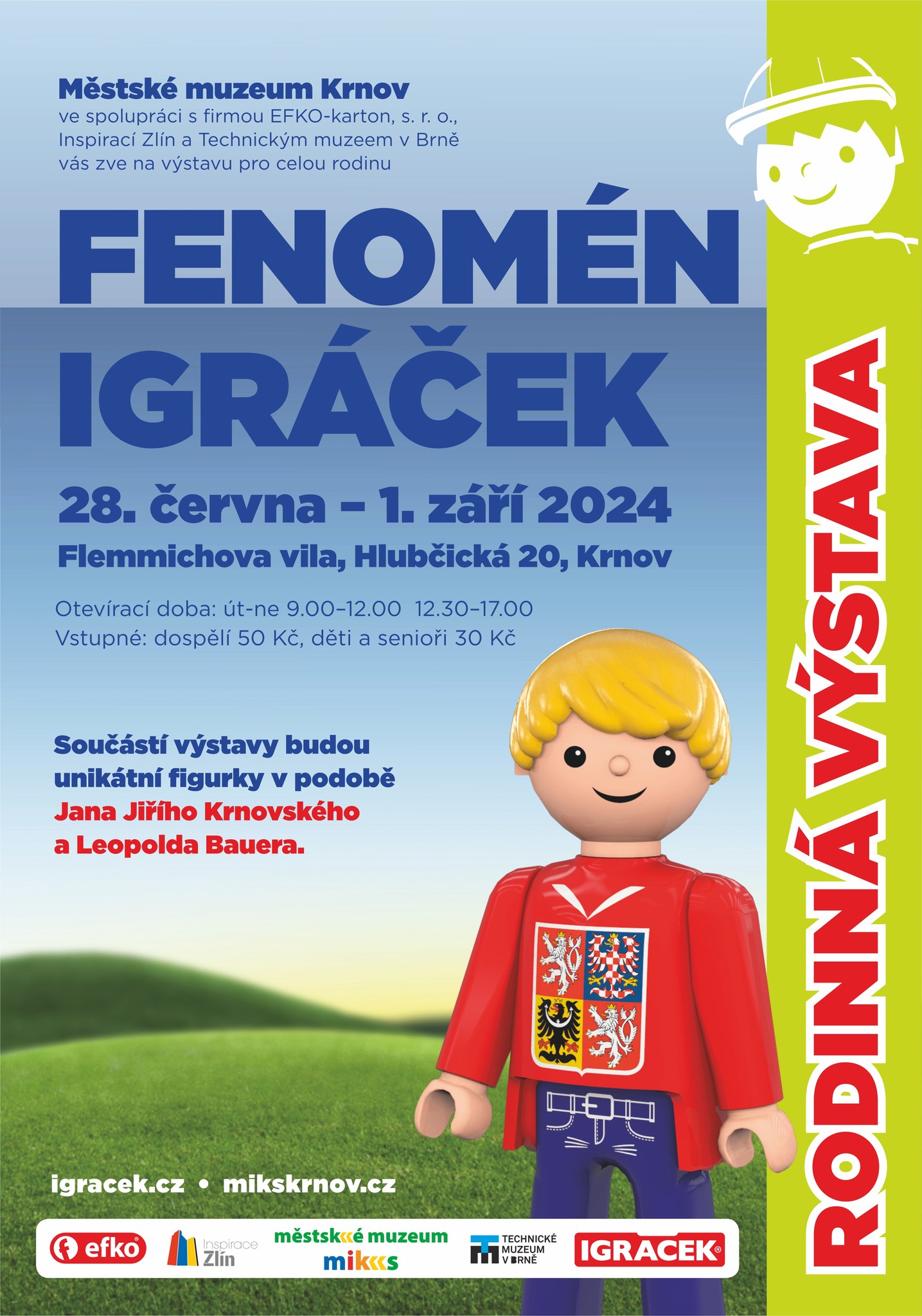 Legendární hračka Igráček a jeho putovní rodinná výstava se během prázdnin stane lákadlem pro rodinný výlet do Městského muzea Krnov. Expozice, která pojednává o historii, výrobě a současnosti populární české hračky bude doplněna také o dvě unikátní neprodejné figurky vytvořené historikem a modelářem Miroslavem Svobodou. Ten speciálně pro tuto výstavu z Igráčků vyrobil postavičky architekta Leopola Bauera (krnovského rodáka) a významnou osobnost saského vévodu z doby třicetileté války Jana Jiřího Krnovského. Výstavu, která bude k vidění do 1. září 2024, pořádá Inspirace Zlín ve spolupráci s Městským muzeem Krnov, českým výrobcem hraček EFKO a Technickým muzeem Brno.