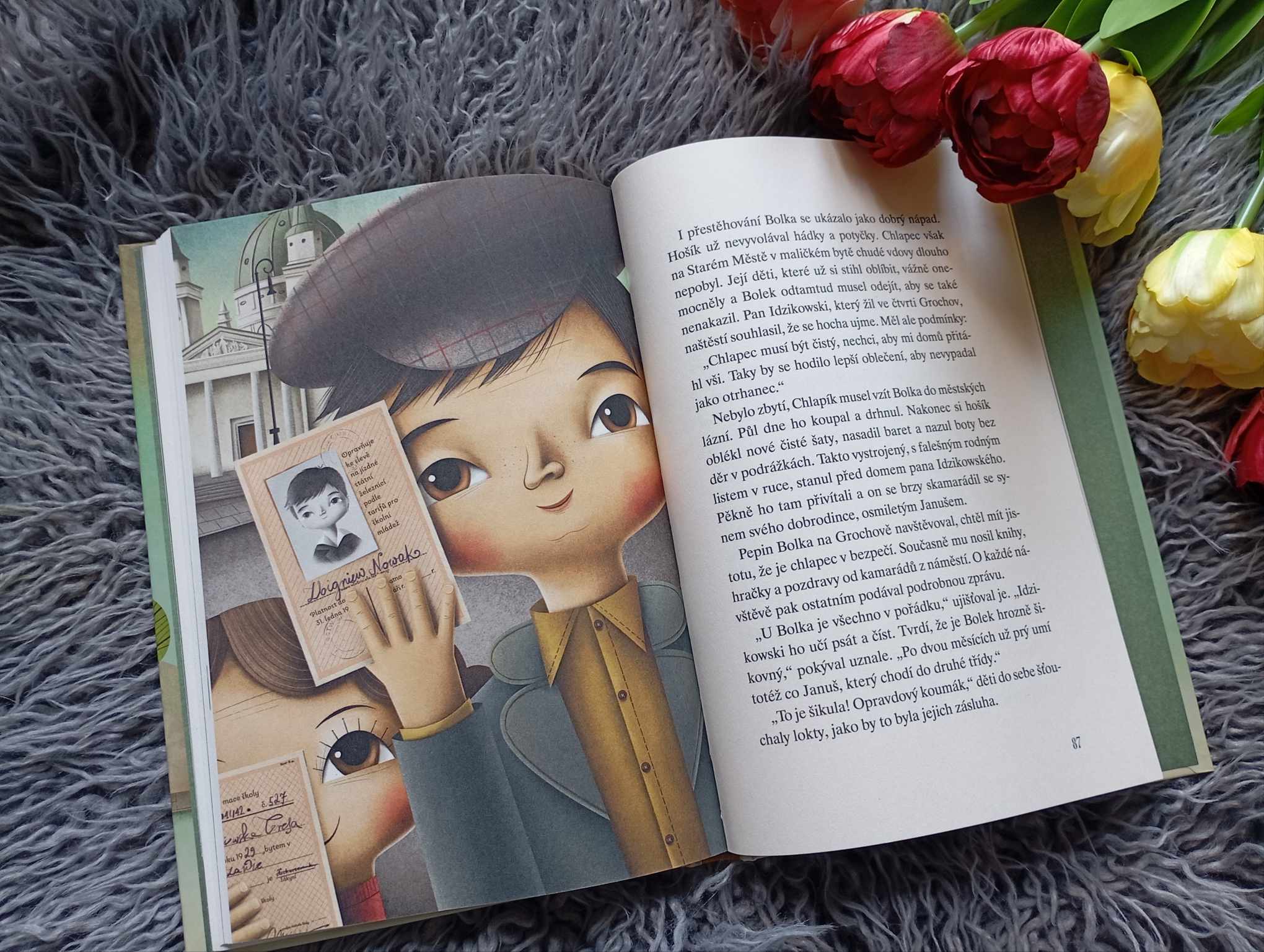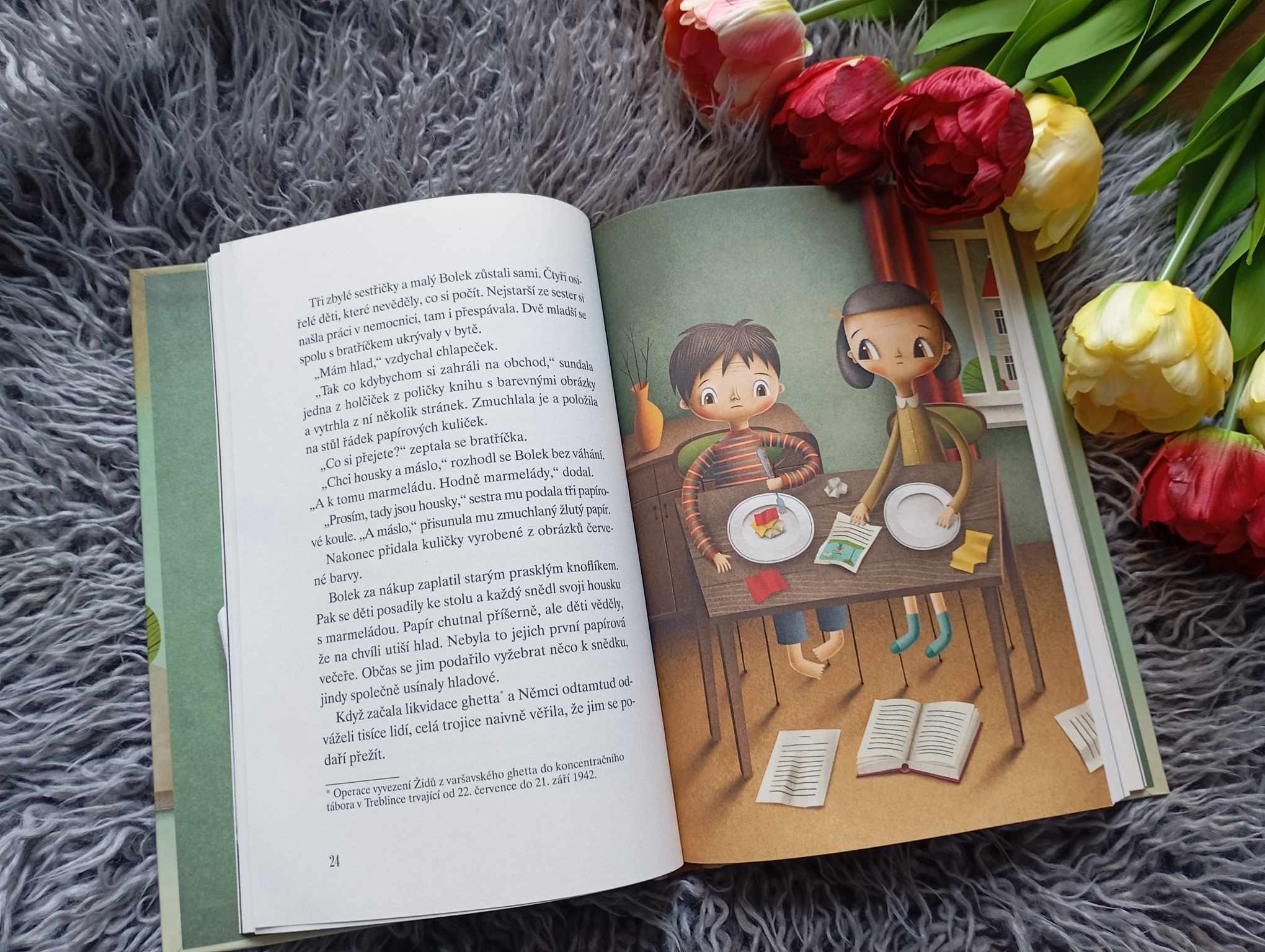 Tato kniha je napsaná podle skutečných událostí, jež zaznamenal ve své knize Prodavači cigaret z náměstí Tří křížů Josef Zysman. Renata Piątkowska jej převyprávěla tak, aby byl čitelný a pochopitelný i pro dětské čtenáře. Krásnými ilustracemi ji pak doplnil Maciej Szymanowicz. Knížka nemá kapitoly, ale jednotlivé části jsou oddělené vždy malým obrázkem. Písmenka jsou vhodná velikostí přibližně pro děti od třetí třídy, což odpovídá i doporučenému věku. Myslím, že tato knížka zaujme spoustu dětí, a rodičům i pedagogům pomůže celou zmíněnou problematiku vysvětlit. Navíc je napínavá, i když v mnohém drsná a smutná.