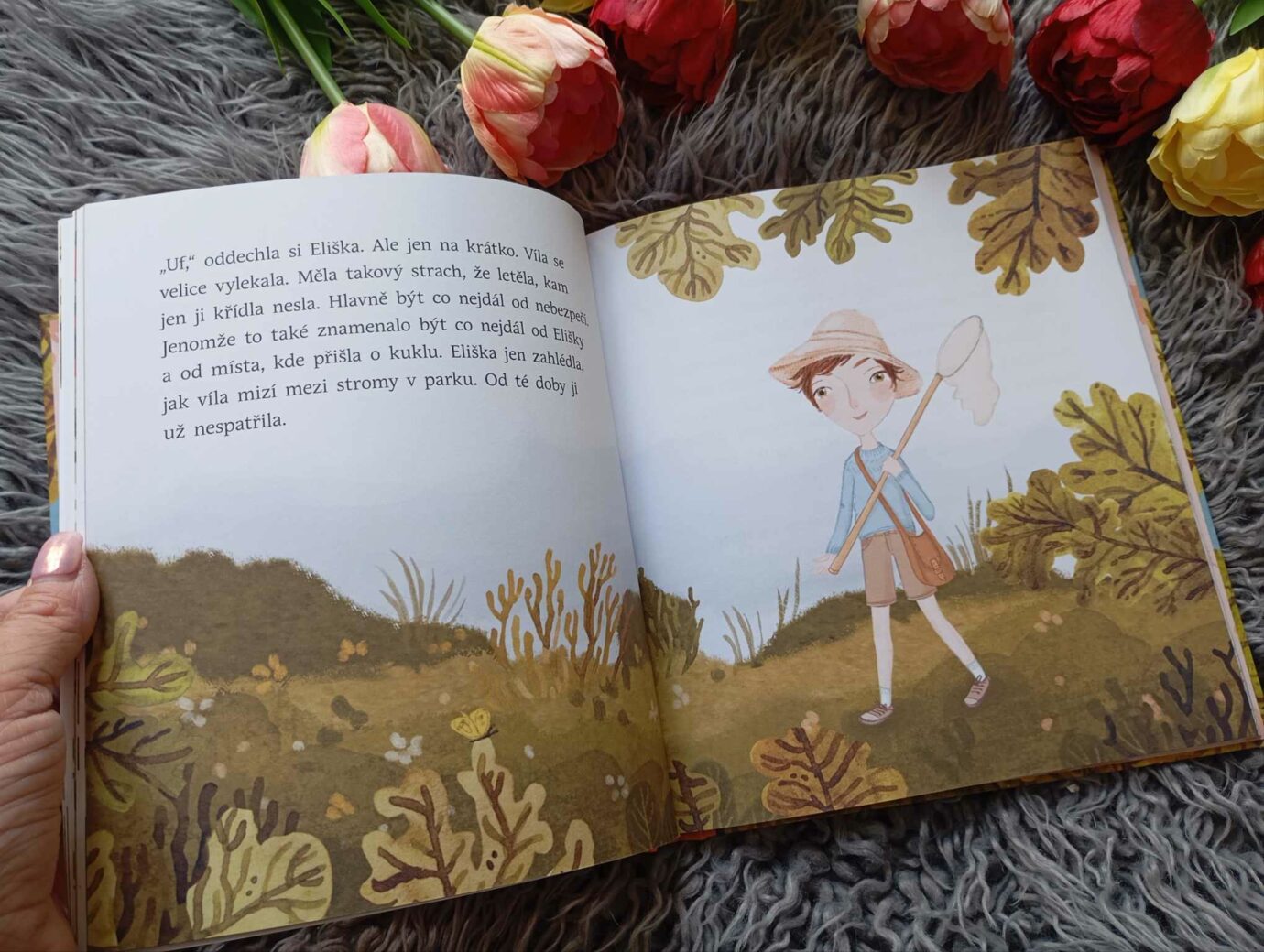 Mně se zase líbilo, jak autorka ukázala kus přírody, který jsme zatím v knížkách moc nenacházeli – o motýlech a housenkách. Nové téma děti bavilo. Dozvěděly se poměrně zajímavé informace – např. že motýl vidí dopředu i dozadu, a plno dalšího. Líbilo se jim, že obě děti – Marek i Eliška – se zajímají o přírodu a motýly, a snaží se, aby hmyzu ani zvířatům nikdo neubližoval. Myslím, že to je velmi důležité. Dnes i dospělý raději zašlápne mravence, než aby ho nechal běžet. Jaký potom mají mít děti příklad? Tato knížka jim ale ukáže, že přírodu je potřeba chránit. A na motýlí křídla že se nesahá.