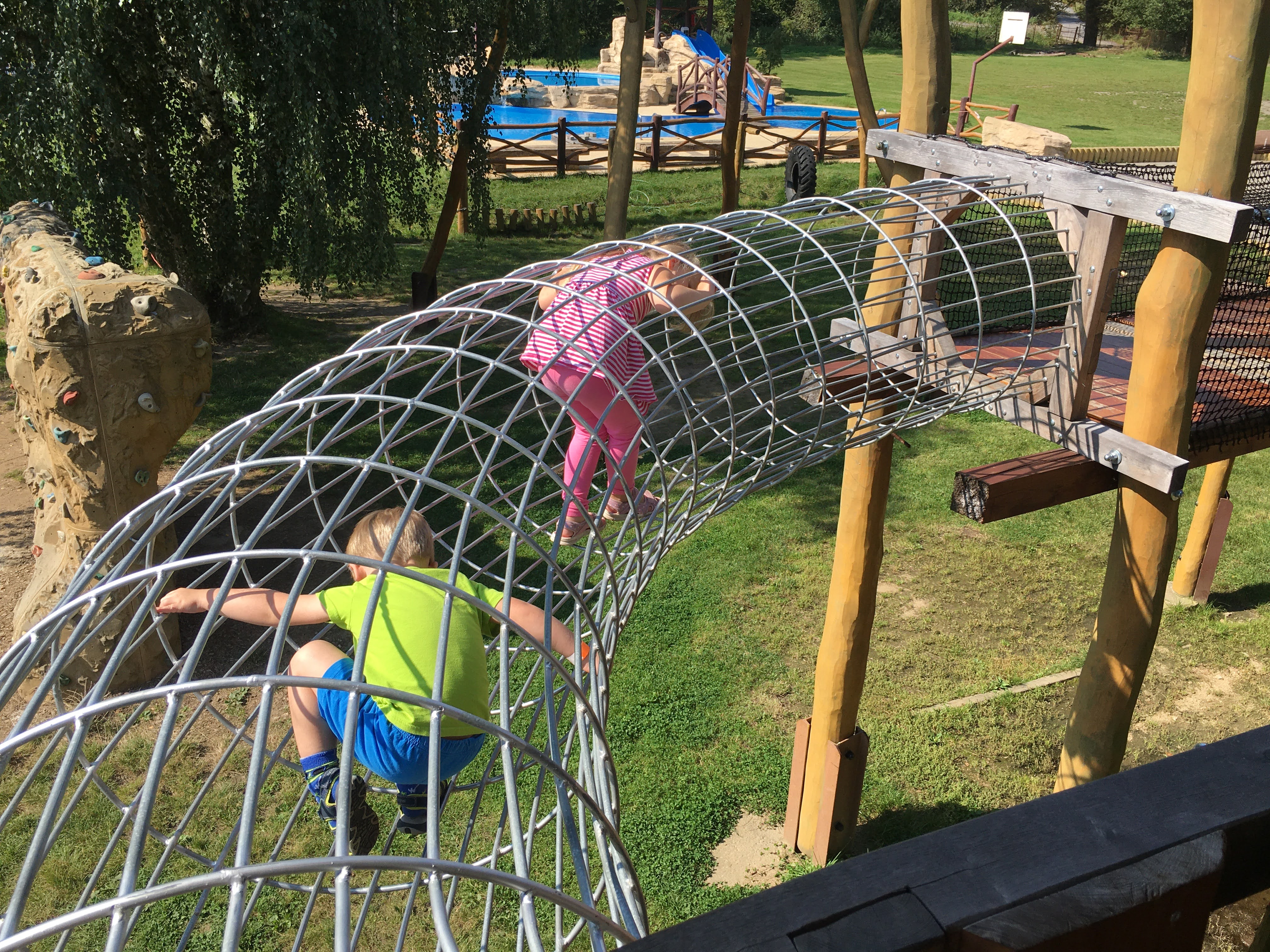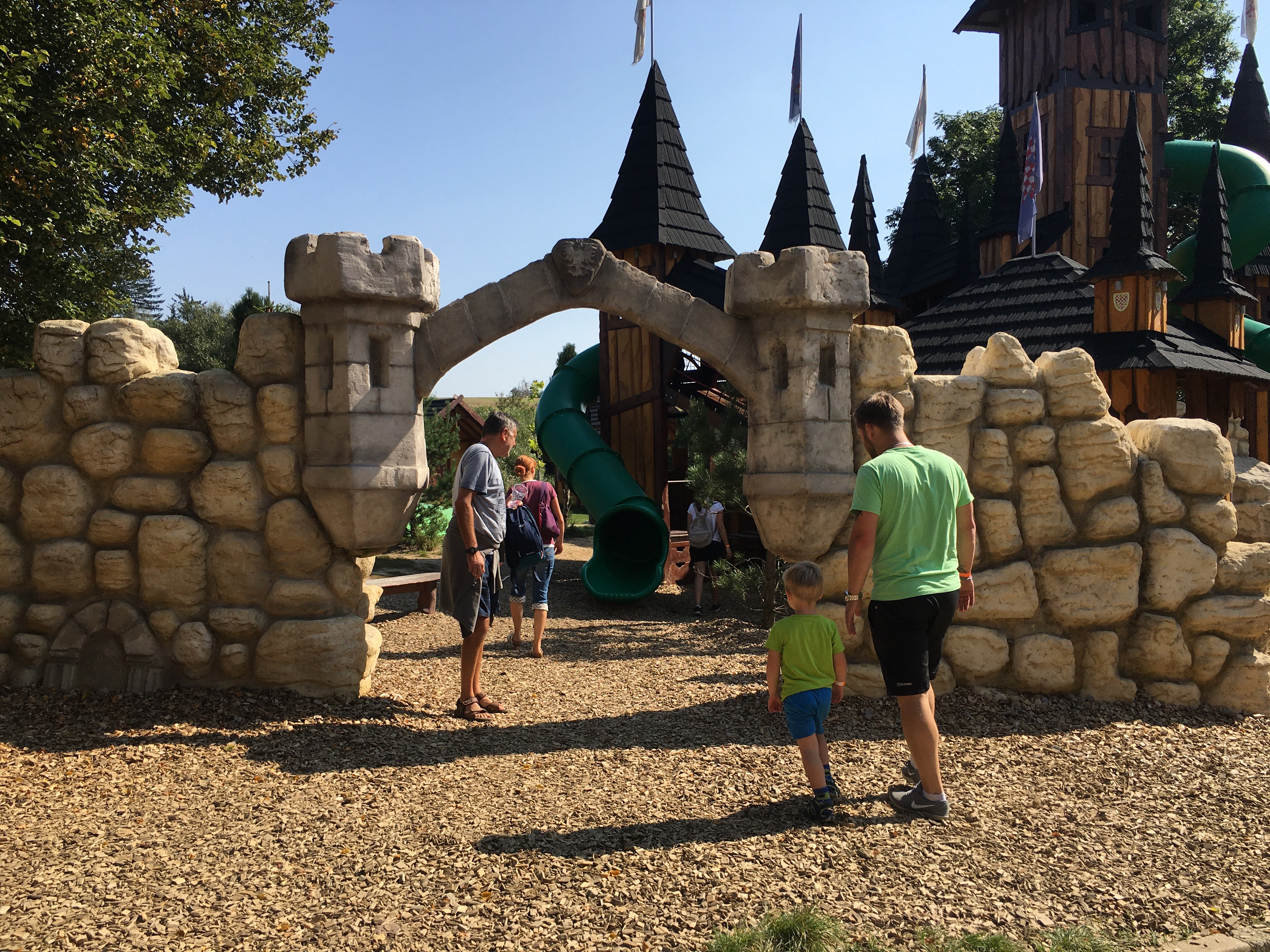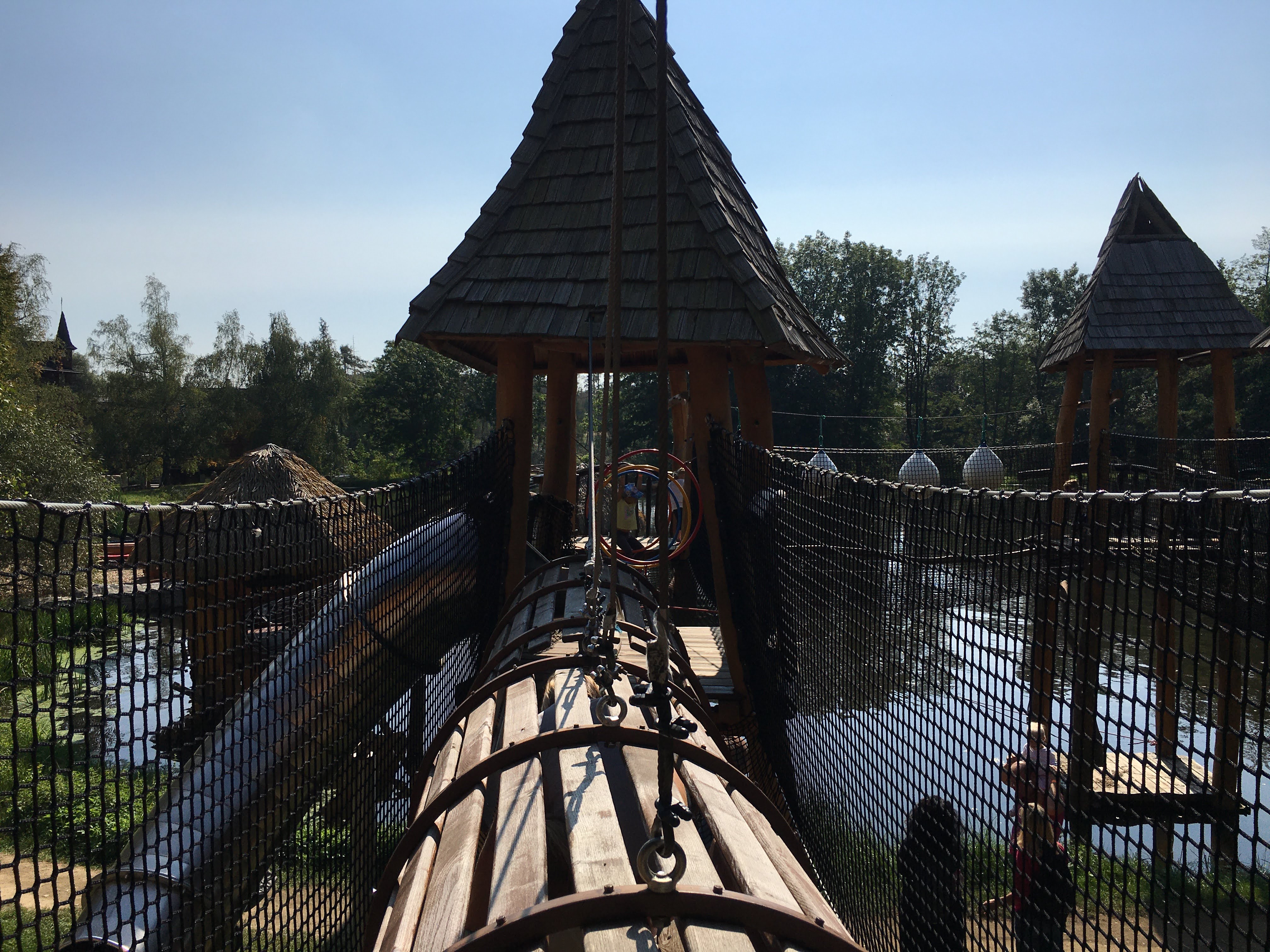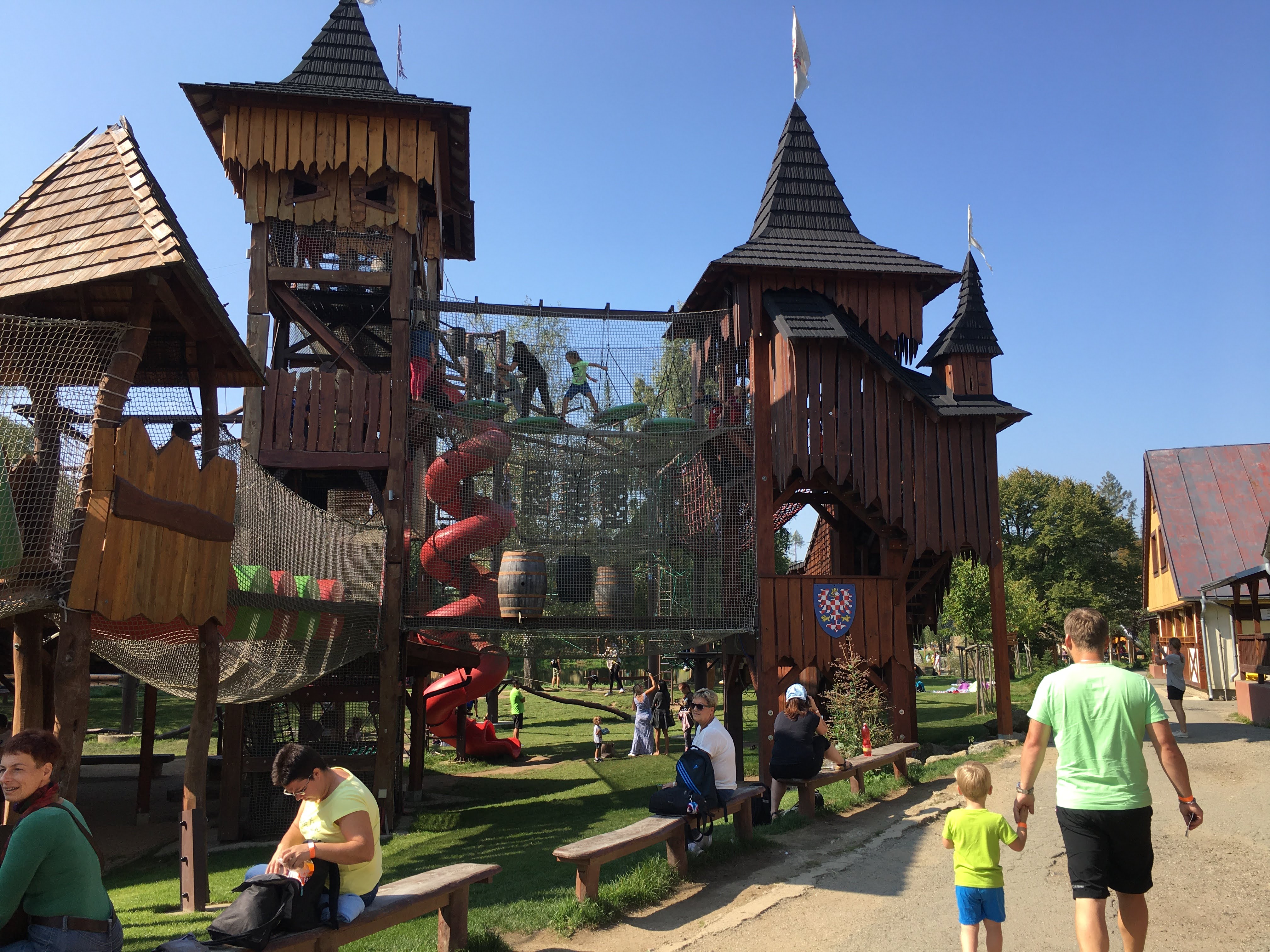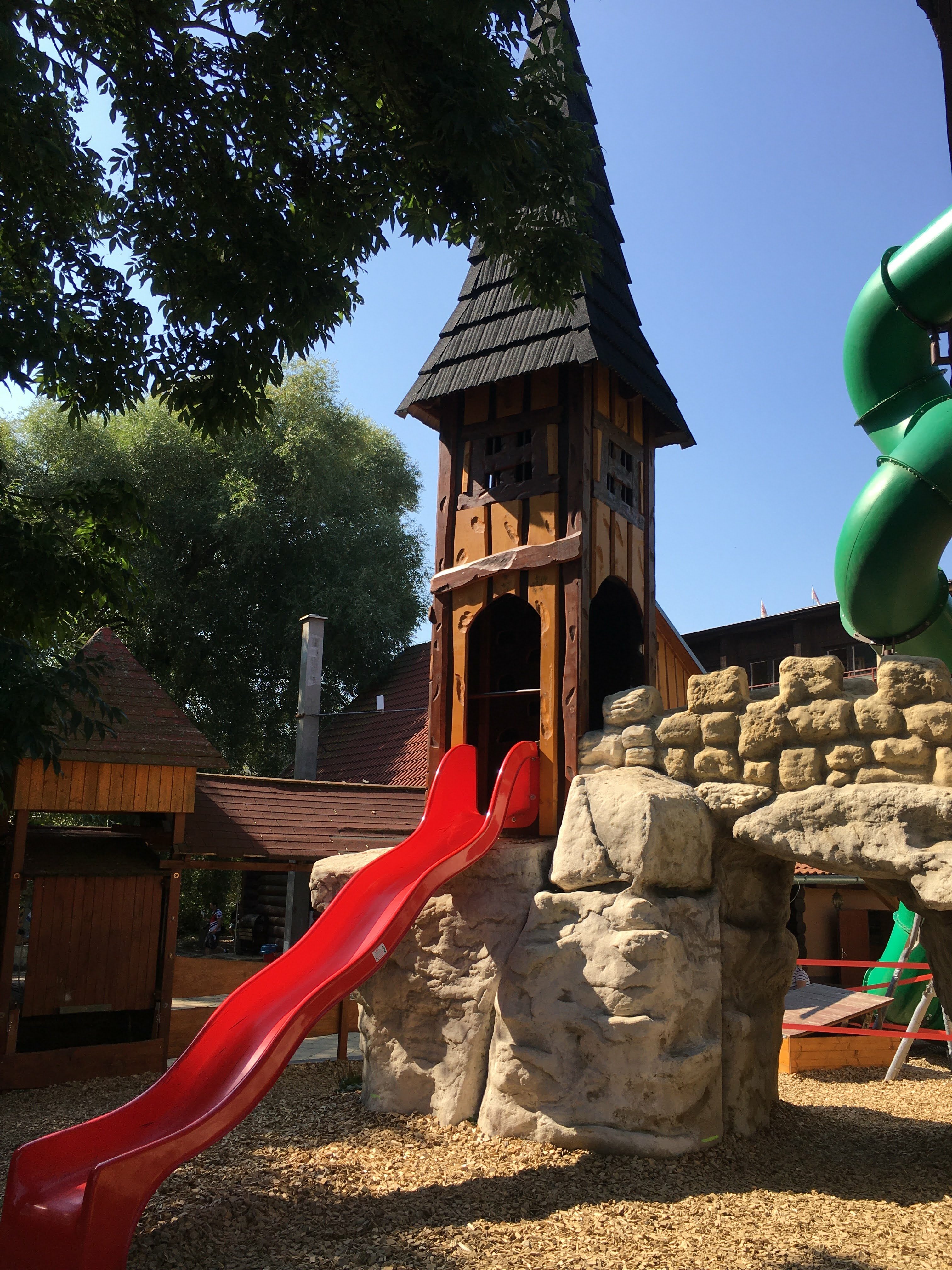 Snad největší úspěch u našich dětí měl velký lanový park v podobě hradu s několika věžemi. V mapě resortu jej najdete pod názvem Vysokolanové centrum. Nemusíte se však bát. I když se většina prolézaček nachází ve vysoké výšce, vše je zajištěné sítěmi, takže případný pád není nebezpečný. Nemusí však dělat dobře lidem, kteří nemají rádi výšky a vadí jim, když pod sebou mají síť, skrz kterou vidí až dolů na trávu. Najdete zde i skluzavky a tobogány.