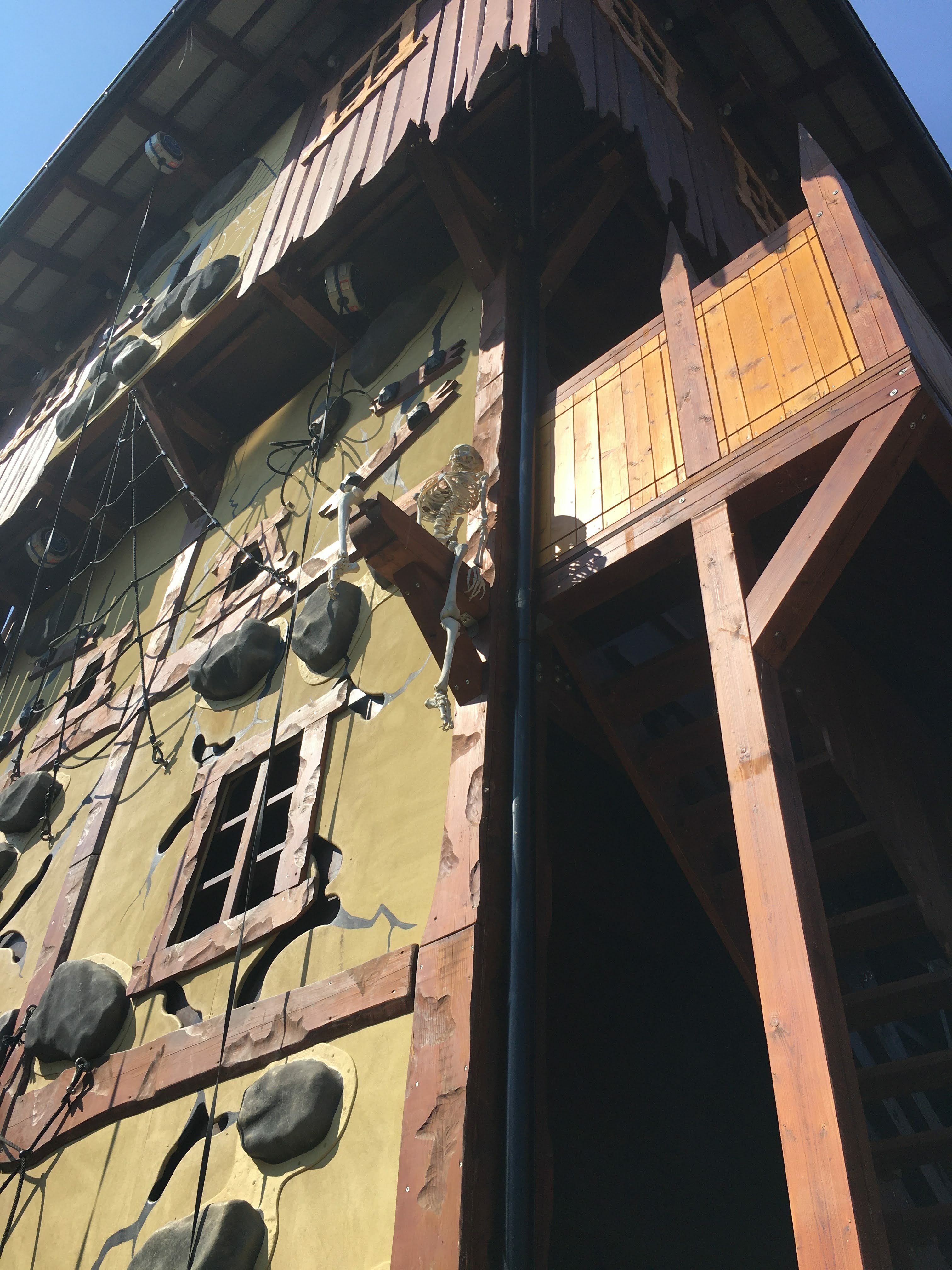 Další krásná atrakce, která se dětem moc líbila, je Sherwood. Jak už asi tušíte, jedná se o zbojnický hrad, který má rovnou pět pater. Je to něco na způsob strašidelného hradu, jaký známe z poutí. Nepohybujete se tu však na vozíku, ale pěkně po svých. Postupně ve skupině procházíte hradem a plníte úkoly, které dostáváte. Tato expozice je interaktivní a jednotlivá místa jsou strážená téměř živými postavami. Ty s vámi komunikují z ukrytých reproduktorů. Pro malé děti to může být strašidelnější, ale s rodiči to jistě zvládnou i ti nejmenší.