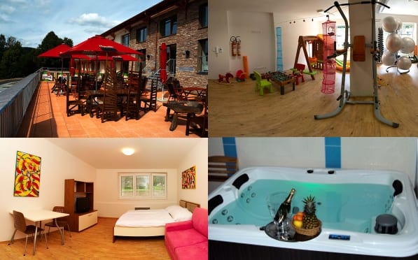 Ubytovaní návštevníci mohou využívat restauraci, wifi, wellness, viřivku a saunu, fitness studio, koutek pro děti , školící místnost, aj.