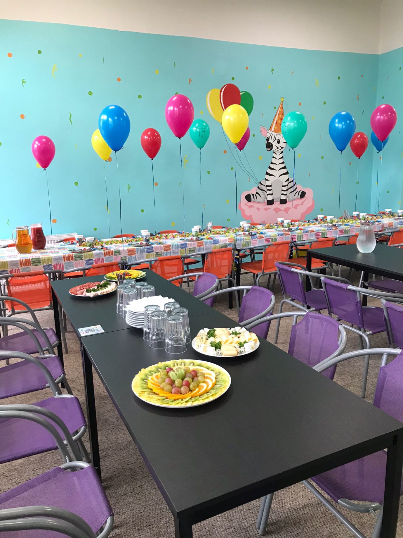 Na oslavu vám pak připravíme krásnou výzdobu dle vašeho přání z naší narozeninové nabídky. Součástí výzdoby je talířek, kelímek a ubrousek dle vybraného tématu pro každé dítě a k tomu výzdobu vyšperkujeme i narozeninovým ubrusem, balónky, frkačkami, čepičkami a serpentýnami. Samozřejmostí je možnost objednat si mísy sýrové, salámové, ovocné, zeleninové, řízkové….