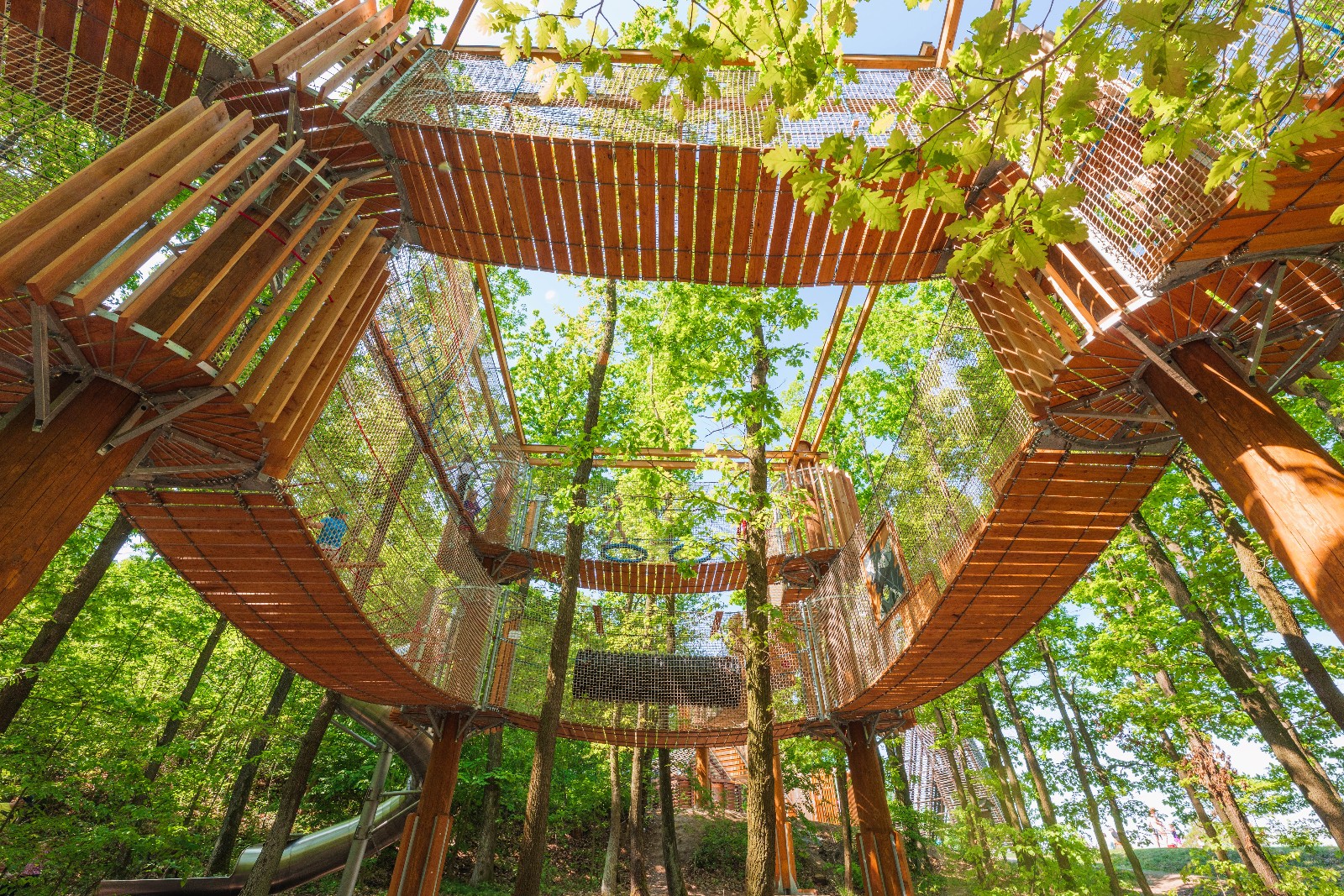 Dominantou parku je rozsáhlé 3D bludiště tvořené dřevěnými domečky a visutými lávkami umístěnými ve výšce 3,5 až 10,8 metru nad zemí. Konstrukce je zabezpečená pevnými ochrannými sítěmi, takže se návštěvníci mohou naplno ponořit do hry a objevování bez obav o bezpečí.