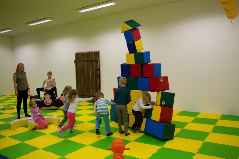 1. patro – vstup, recepce, nafukovací skákací atrakce, velký prolézací labyrint s tobogánem a skluzavkami, velký air-hockey, velké molitanové kostky
