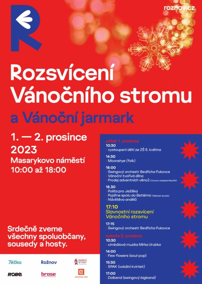 Rožnovské Masarykovo náměstí od pátku 24. listopadu zdobí vánoční strom. Jedná se o dvanáctimetrovou jedli, kterou městu věnoval Karel Maléř z Rybníček. Doprovodný program k slavnostnímu rozsvícení začne na náměstí 1. prosince už v 10.30h, samotný akt rozsvícení je plánován cca. na 17.10 hodin. Návštěvníci se mohou těšit také na Vánoční jarmark, který se bude konat 1. a 2. prosince právě na Masarykově náměstí.