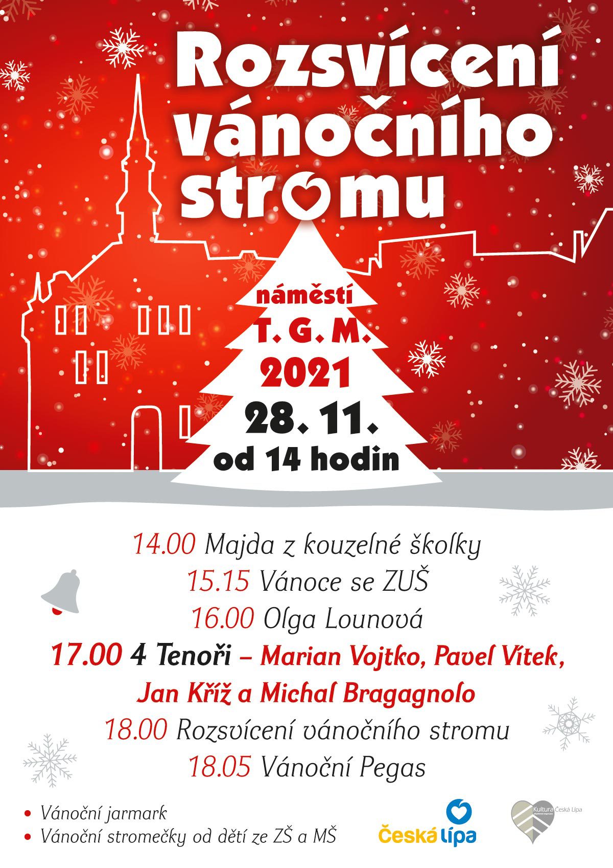 Vystoupí Olga Lounová, ZUŠ a uskupení 4 Tenoři, celý program zakončí Vánoční Pegas.