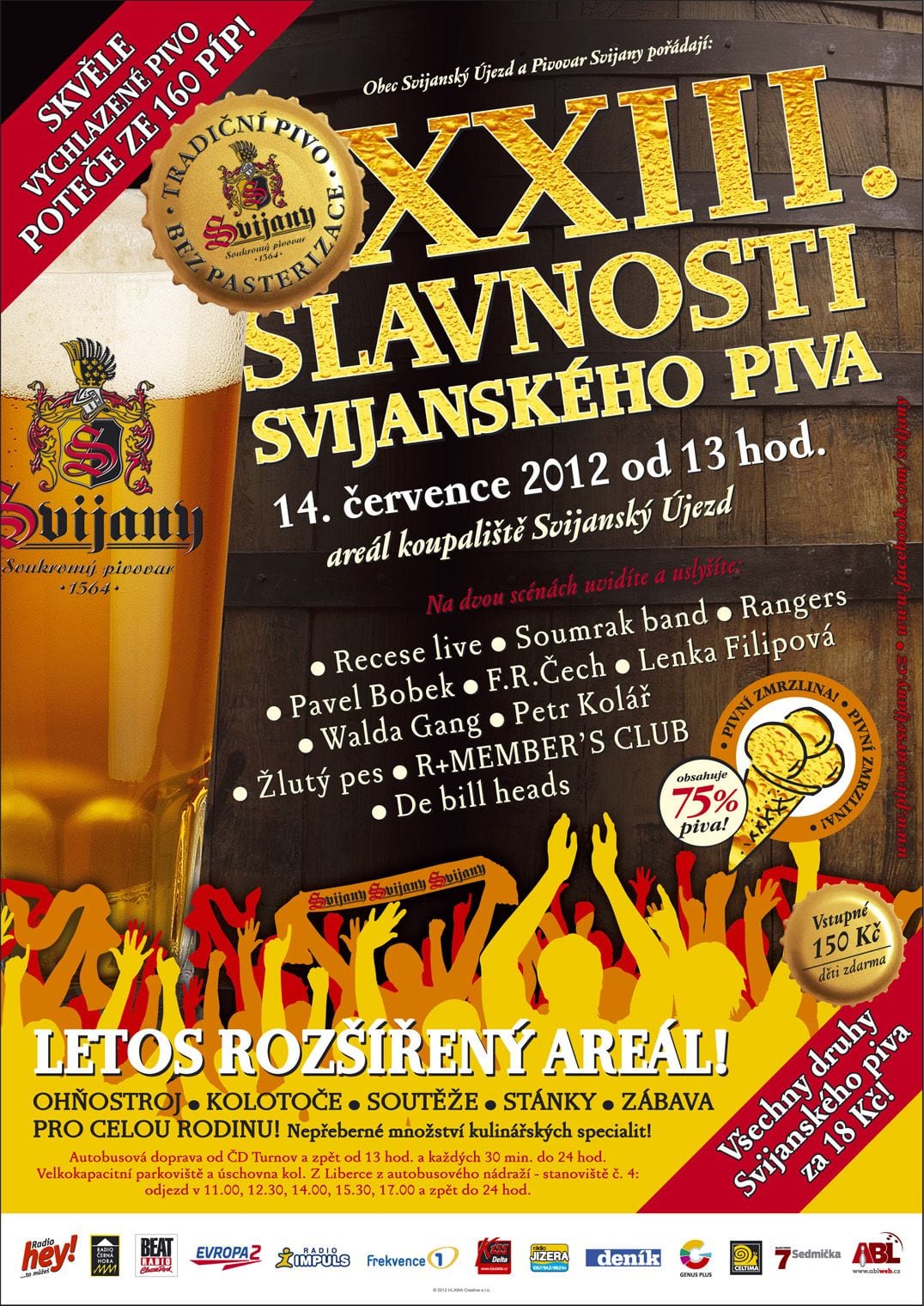 Nikde jinde nebudete mít příležitost ochutnat všechna svijanská piva na jednom místě. Na Slavnostech potečou ze 160 píp za jednotnou cenu 18 Kč. Připraveny budou i dvě novinky, Svijanský fanda a grepový Chipper. Svijanský fanda je řezaná nefiltrovaná jedenáctka. Původně byla určena jako dárek bývalému řediteli k jeho 70. narozeninám, protože ale všem chutnala, rozhodl se svijanský pivovar umožnit ochutnání všem. Další novinkou je Chipper, osvěžující pivní limonáda s přírodní šťávou z růžového grepu v kombinaci s pšeničným pivem. Tyto dvě novinky můžete ochutnat i v podobě pivní zmrzliny s 75% obsahem piva, která bude samozřejmě určena jen osobám starším 18 let.
