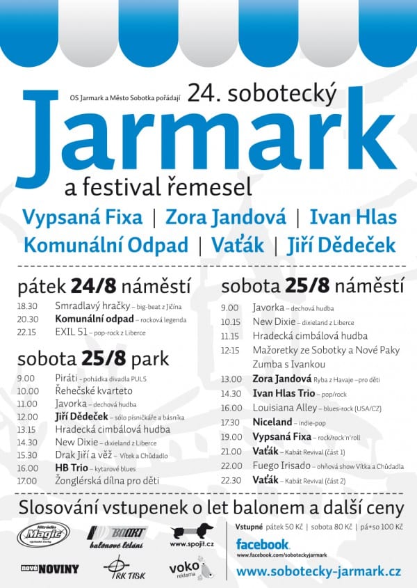 Víc informací včetně podrobného programu najdete na webových stránkách www.sobotecky-jarmark.cz a na Facebooku