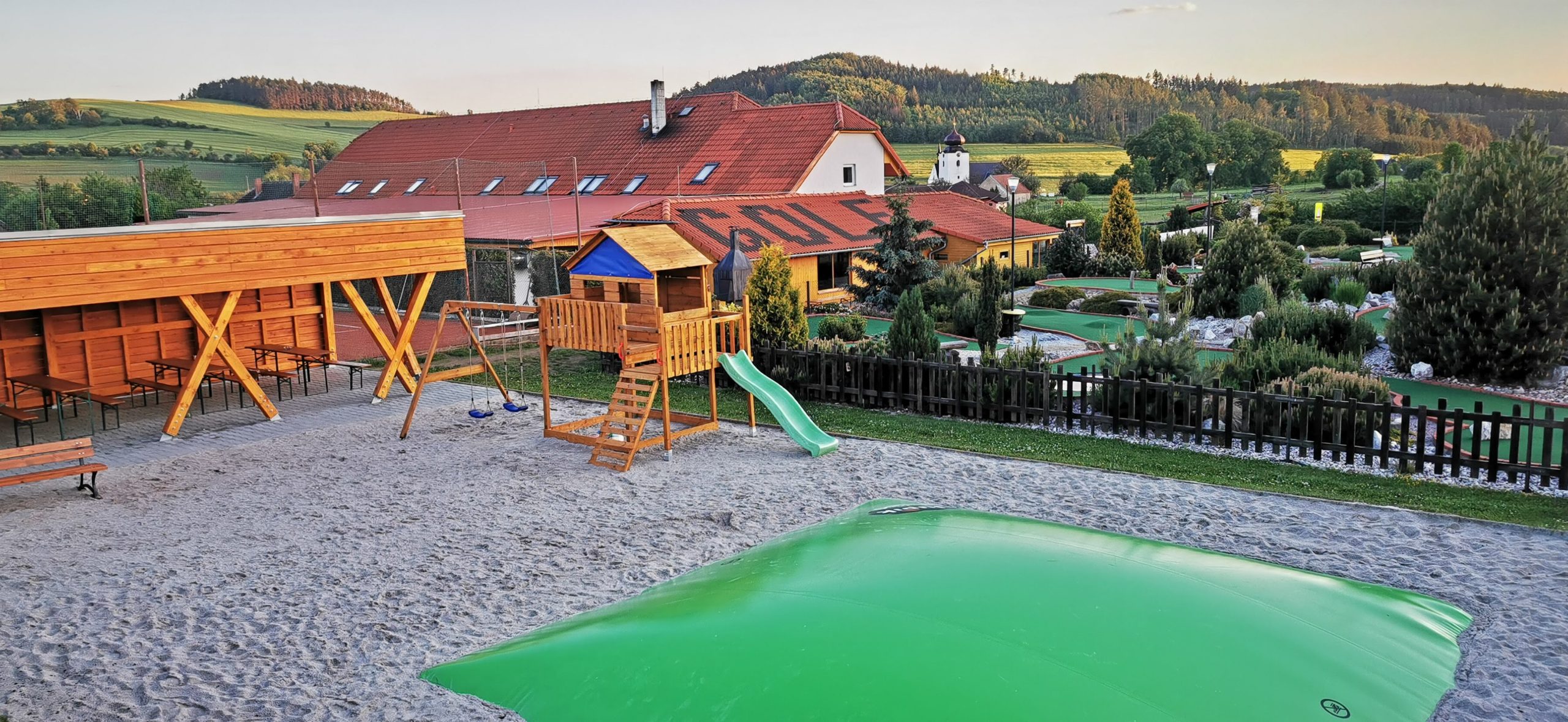 Hernu, společenskou místnost, i kolárnu / kočárkárnu / lyžárnu můžete používat, ať budete bydlet kdekoliv. Při hezkém počasí vás jistě potěší nové dětské hřiště s velkou trampolínou a areál Adventure golfu. Ten pobaví malé i velké, je to zábavný sport opravdu pro každého! Vybavení rádi zapůjčíme, hole jsou připraveny i v dětském provedení.