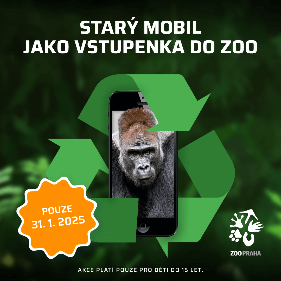 Přineste v pátek 31. 1. na pololetní prázdniny svůj starý vyřazený telefon do Zoo Praha. Získáte dětskou vstupenku za symbolickou 1 Kč a podpoříte kriticky ohrožený druh goril nížinných. O bezpečnou a ekologickou recyklaci vašeho zařízení se postará neziskový spolek Remobil.