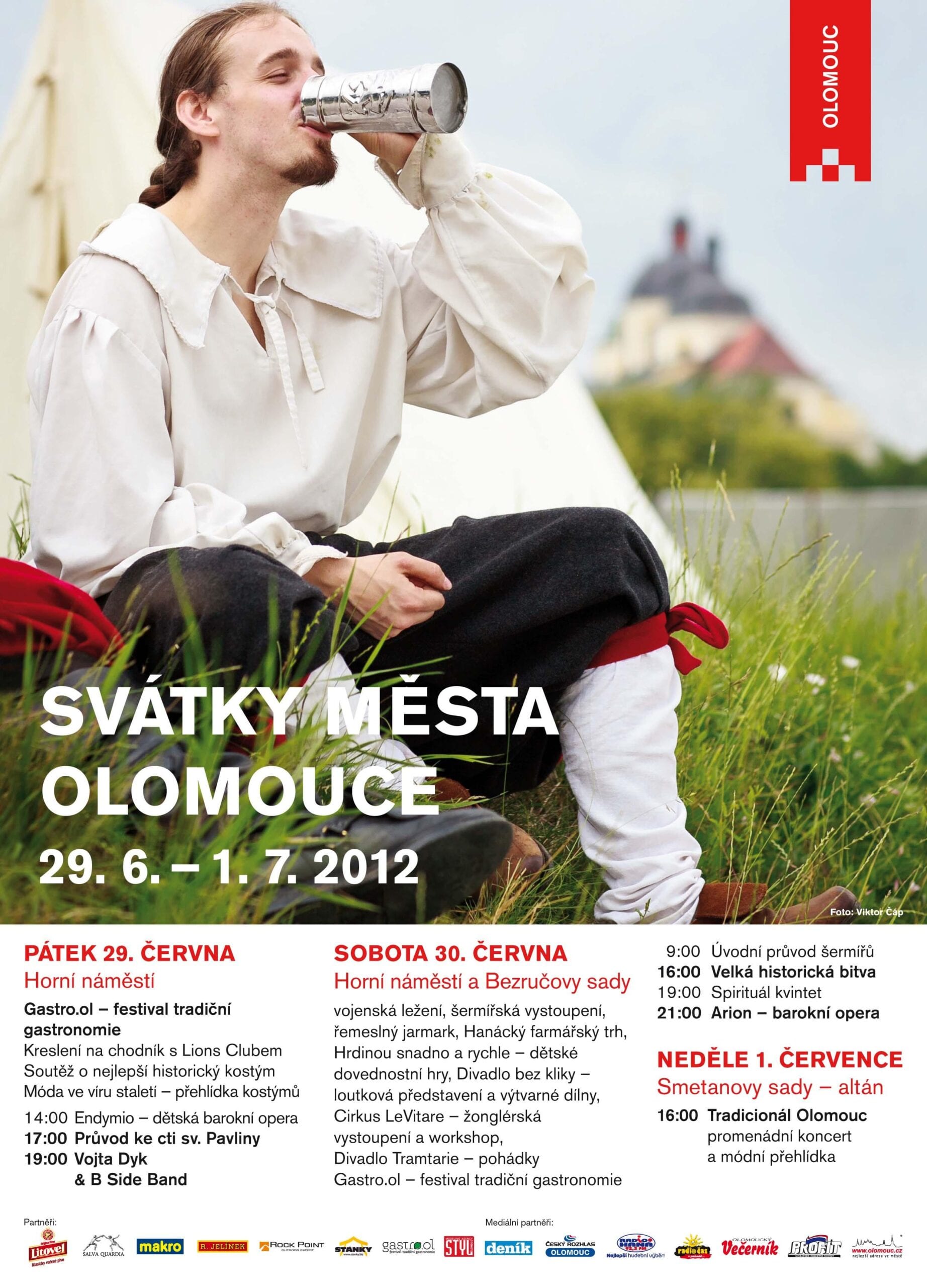 Dobré tradice se poznají snadno; spousta lidí se na konci jednoho dějství těší, až přijde to další, a jsou zvědaví, jaké vlastně bude. Právě tak to je se Svátky města Olomouce. Jen co skončily vydařené oslavy v roce 2011, začalo se uvažovat nad dramaturgií svátků města 2012. Během tří dnů na přelomu června a července budeme moci všichni okusit, nakolik se tvůrcům programu podařilo navázat na úspěchy předchozích ročníků. Můžeme prozradit, že svátky města budou opět vonět regionálními dobrotami, opět je bude provázet řinčení zbraní a opět si připomeneme i tradice, které nás pojí s našimi dávnými předky.