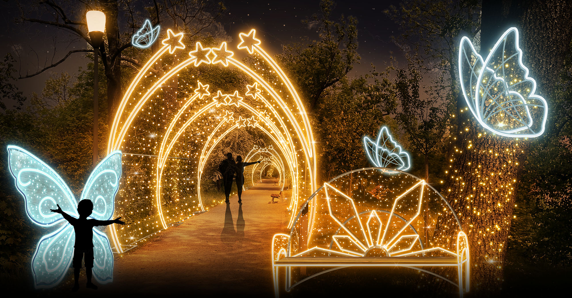 - Světelné tunely: Vás zavedou do světa fantazie.
