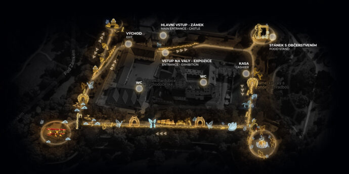 Zažijte noční atmosféru pardubického zámku, který se v rámci této expozice mění v pohádkový svět světel. Budete procházet osvětlenými tunely, kolem barevných motýlů a magických stvoření, zatímco se vám naskytne nový pohled na tuto historickou lokalitu.