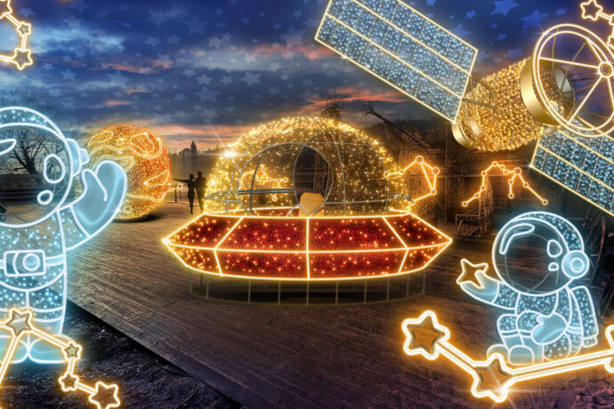 Prozkoumejte gigantické světelné slunce, navštivte světelnou hvězdárnu, kde si můžete představit, jak hvězdáři zkoumají nekonečný vesmír. Dále vás čekají světelné satelity, vesmírné sondy a astronauti, kteří jsou součástí expozice. Ponořte se do světa vesmírného výzkumu a poznání!