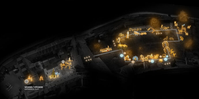 V zahradách pivovaru ožívá krumlovský vodník, lesní zvířata a další pohádkové postavy, které nadchnou děti i dospělé. Dominantní instalace v podobě světelného reliéfu města Český Krumlov s velkým nápisem „Krumlov“ vytváří skvělou příležitost pro nezapomenutelné fotografie.