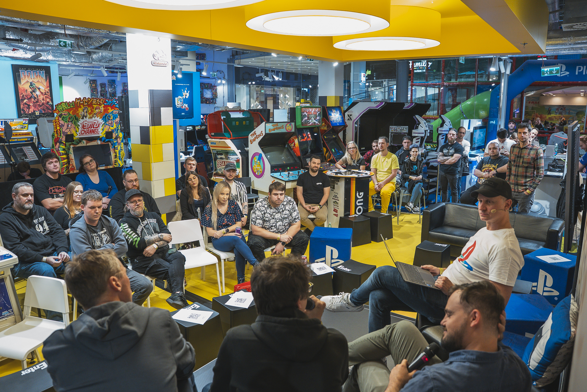 Toto je místo pro vaši zábavu, jen kousek od centra Plzně, přímo vedle zimního stadionu. Nejen, že se zde dobře pobavíte, ale ochutnáte i originální americké, japonské, korejské limonády. Dáte si kávu, muffin nebo cookies. Přijďte si zahrát s přáteli, kolegy z práce, rodinou. Je také ideálním místem pro různé eventy, oslavu, teambuilding nebo prostor kde si jen můžete poměřit skill s kamarády. Videoherní mašiny z celého světa od klasických po moderní – arcade automaty až pro 4 hráče, konzole, pinbally, počítače 286, 386, Pentium MMX a na síti až pro 8 hráčů Pentium 4. Čekají na vás závody, simulátory, střílečky, RPG – Bomberman, Chunithm, Daytona, DariusBurst Ex, DARK ESCAPE 4D, DOOM, Duke Nukem 3D, Gauntlet Legends, LeMans24, Mario, Metal Slug, Metal Gear ARCADE 3D, Need for Speed, House oft he Dead, Pac-Man, Pokémon Tournament, Prince of Persia, Rayman, Ridge Racer, Puzzle Bobble, Sega Rally, Space Invaders, Simcity, Sonic, Star Wars Episode 1, Quake, Unreal Tournament, Warcraft, Wolfenstein a další.