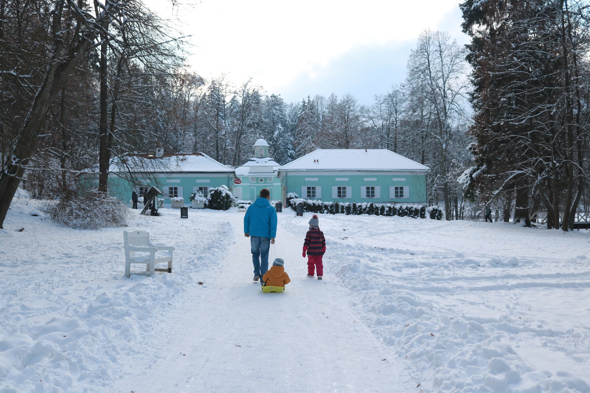 Postupně vyrostla i různá odpočinková místa. Modrý dům je asi nejznámější, bohužel dnes již v ruinách. V roce 1915 ho z velké části zničila povodeň. Šlechtična v něm obvykle trávila letní měsíce přímo uprostřed parku. Nechyběly ani soukromé lázně, které dnes známe pod pojmem Lázničky.