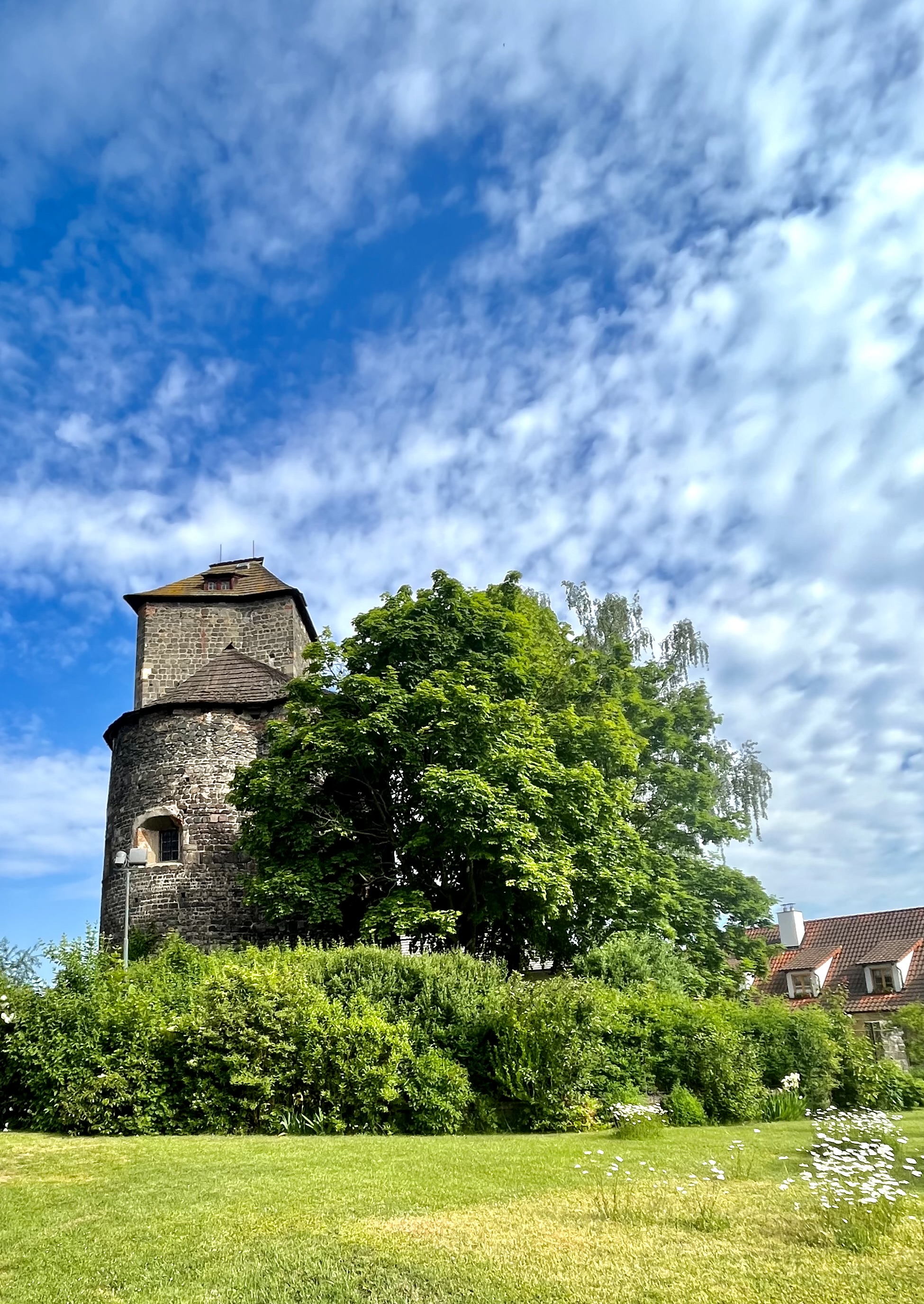 Součástí hradu je románská rotunda s hranolovou věží. Nejstarší písemná zpráva o existenci Týnce a týneckého hradu je z roku 1318 a zachovala se ve zlomku bývalých soudních spisů tzv. půhonných desek. Archeologické nálezy ukázaly, že tato oblast byla osídlena již v 8. až 10. století. V 11. století zde byl postaven nejprve dřevěný a později kamenný hrad s románskou rotundou, která je nejstarší dochovanou stavební památkou v Týnci. Gotická věž nyní slouží jako rozhledna. V muzeu se nachází stálá expozice týnecké kameniny. Při návštěvě týneckého hradu máte jedinečnou možnost seznámit se s jeho pozoruhodnými obyvateli. Předposlední podlaží hradní věže totiž obývá letní kolonie netopýra velkého.