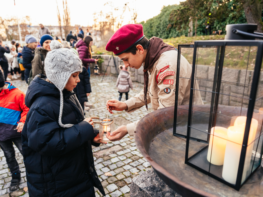 V neděli 22. prosince na tvořivou dílnu naváže pěvecké vystoupení, letos si vánoční písně zazpíváte společně s přípravným oddělením chlapeckého sboru BONIFANTES. Skauti pak pomníku přinesou Betlémské světlo. Pokud si tedy donesete svoji lucerničku, můžete si tento symbol míru, lásky, naděje a přátelství odnést domů.