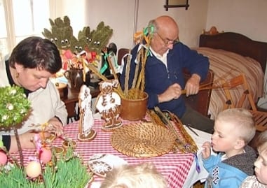 Horách, vyzdobené malovanými vajíčky a slavnostním pečivem, tradiční velikonoční činnosti a připomenou sváteční zvyky a obyčeje. Návštěvníci mohou sledovat a sami si vyzkoušet například pletení pomlázek, zdobení kraslic, pečení jidášů, zdobení perníčků cukrovou polevou, drátování vajec a výrobu textilních a korálkových ozdob.