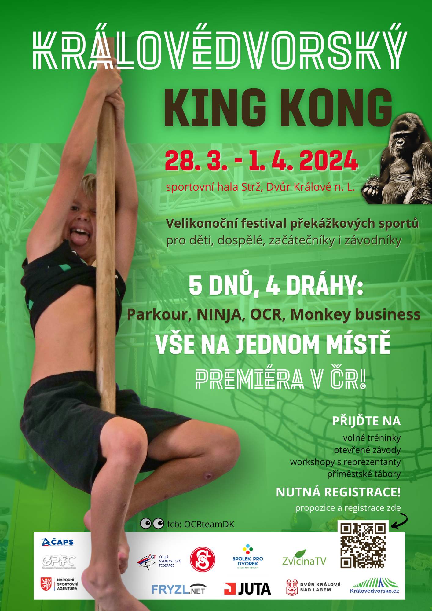 Na unikátní tréninkovou i závodní arénu zaměřenou na překážkové sporty se změní během velikonočních prázdnin sportovní hala ve Dvoře Králové nad Labem. Dráhy na Parkour, NINJU, OCR a Monkey Business z ní udělají na přelomu března a dubna udělají jedinečné místo pro výkonnostní sportovce i širokou veřejnost.