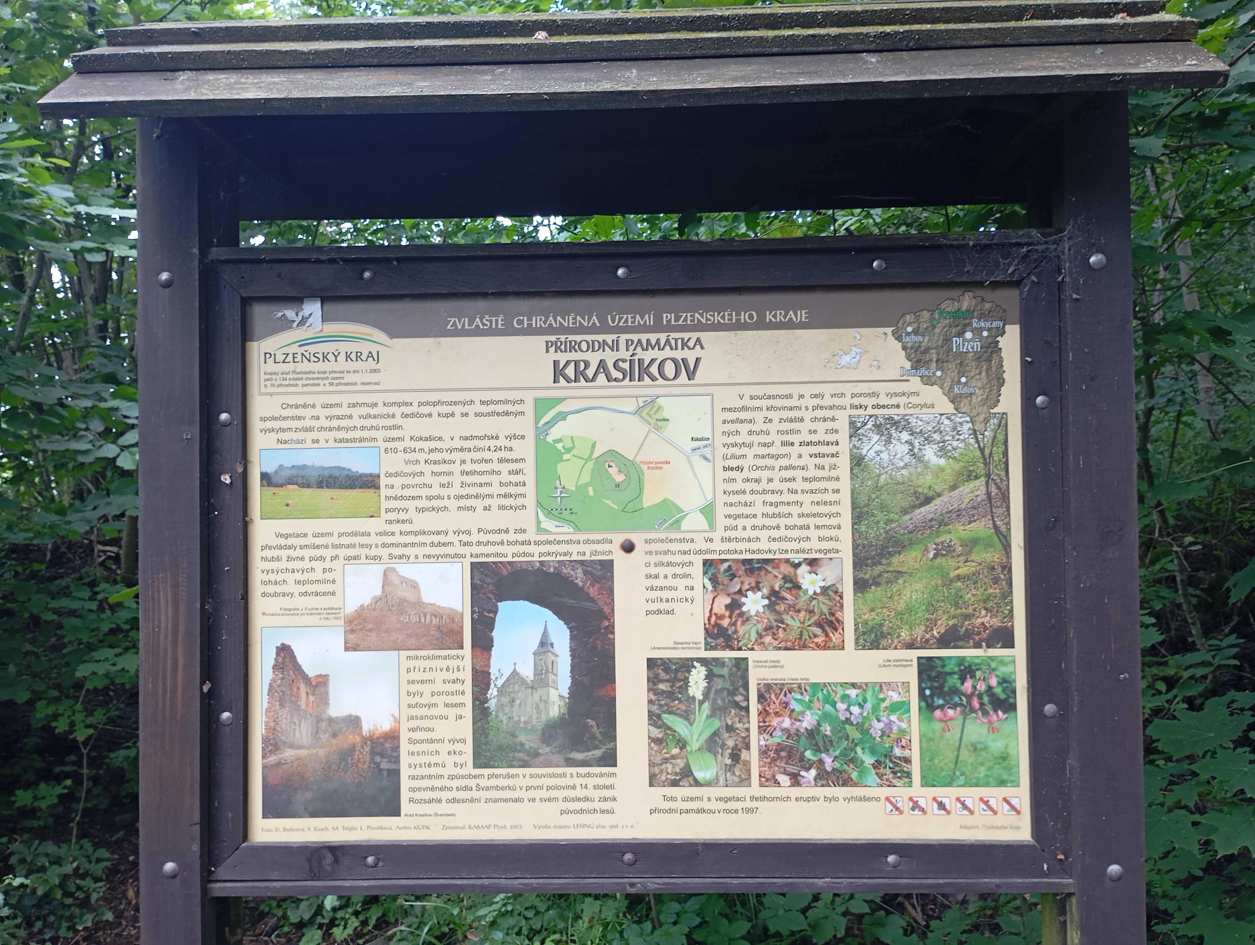 Vrch Krasíkov je chráněn jako přírodní památka s výskytem teplomilných společenstev. Pokud se sem vydáte, můžete zaparkovat na úpatí vrchu a vyrazit nahoru po přístupové cestě. Ta je dostatečně široká pro auta – když se tu konají trhy, stánkaři obvykle vyjedou až ke kostelu. Využít ale můžete i turistickou trasu z Konstantinových Lázní přes Dolní Polžici a Ovčí vrch, který rovněž stojí za samostatný výlet. Vyrazit se dá ale i po turistické trase z Černošína. Záleží jen na vás, jak velký výlet si chcete udělat a co vaše děti ujdou.
