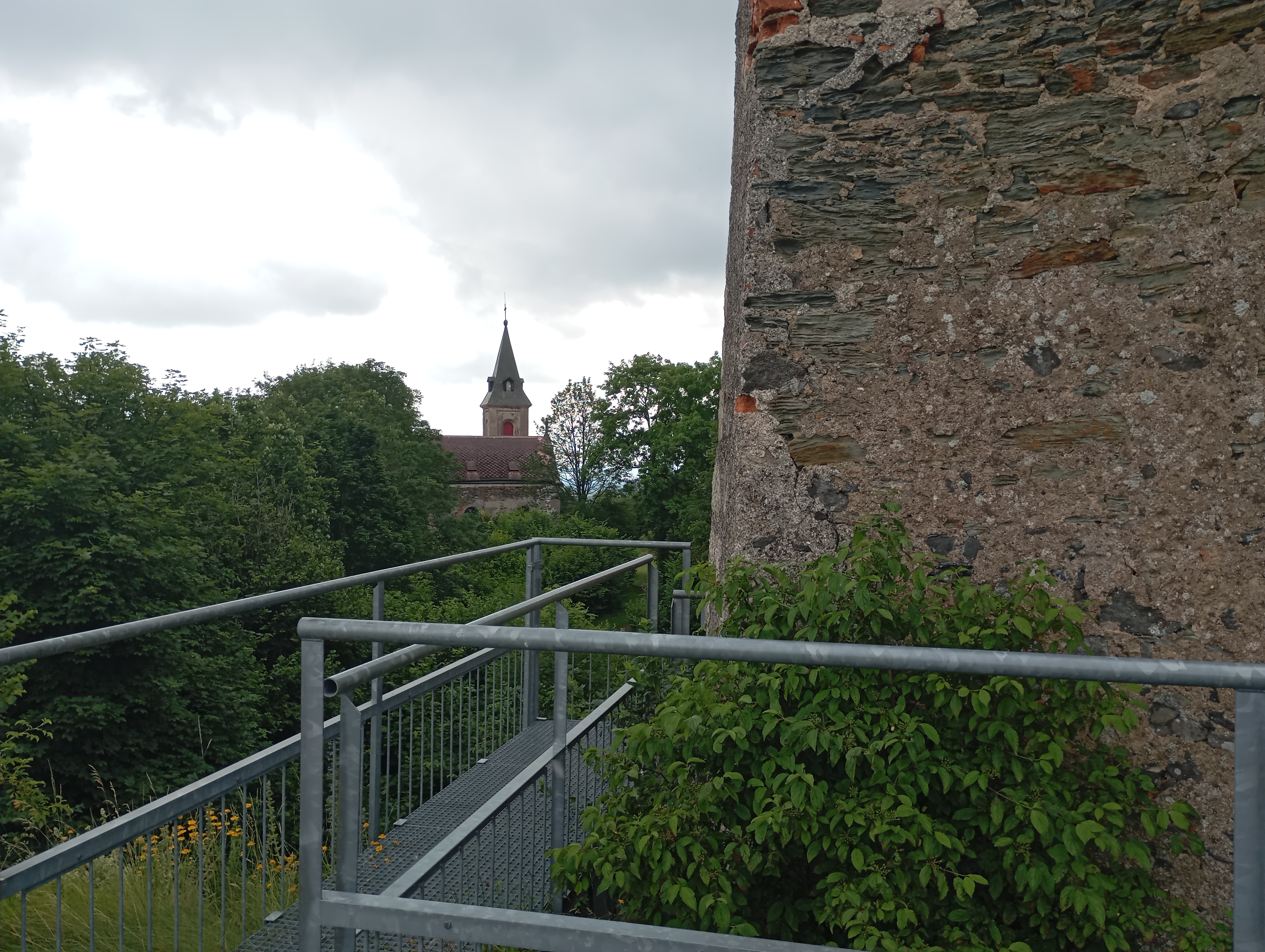 Jak už jsem zmínila, na Krasíkově nenajdete jen kostel sv. Máří Magdalény, ale také zříceninu hradu Švamberk. Kdo umí německy, jistě už pochopil, že Krasíkov je český překlad jména Schwamberg. Odtud tedy plyne název celého vrchu a také samoty. Hrad založili Švamberkové ve druhé polovině 13. století, kteří jej drželi až do konce třicetileté války. Hrad byl dobit Janem Žižkou a obsazen husity. Posléze několikrát vyhořel a neminula ho ani švédská vojska. Není tedy divu, že se nezachoval do dnešní doby v lepším stavu. K vidění jsou zde sice jen některé obvodní zdi, ale za průzkum stojí i různé sklepy a další zřícené zdi stavení patřících kdysi k hradu. Pokud sem s dětmi vyrazíte, můžete jim tu nachystat klidně i bojovou hru. Neznám lepší místo, na kterém by si ji lépe užily.