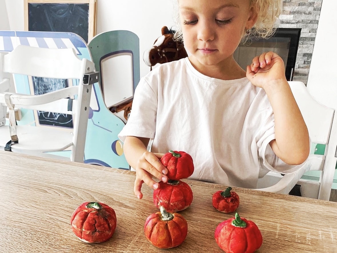 Poslední tip je pečení ze slaného těsta. Vyrobit slané těsto není nic složitého a výhoda je, že ingredience máte určitě doma. Budete potřebovat jen mouku, sůl a vodu. Vše smícháte, vytvoříte těsto a vymodelujete cokoliv, co chcete. V našem případě to byly dýně na Halloween. Když máte hotovo, položíte výrobky na plech na pečicí papír a dáte péct do trouby na 100 stupňů na 4 hodiny. Po vychlazení malujeme akrylovými barvami.