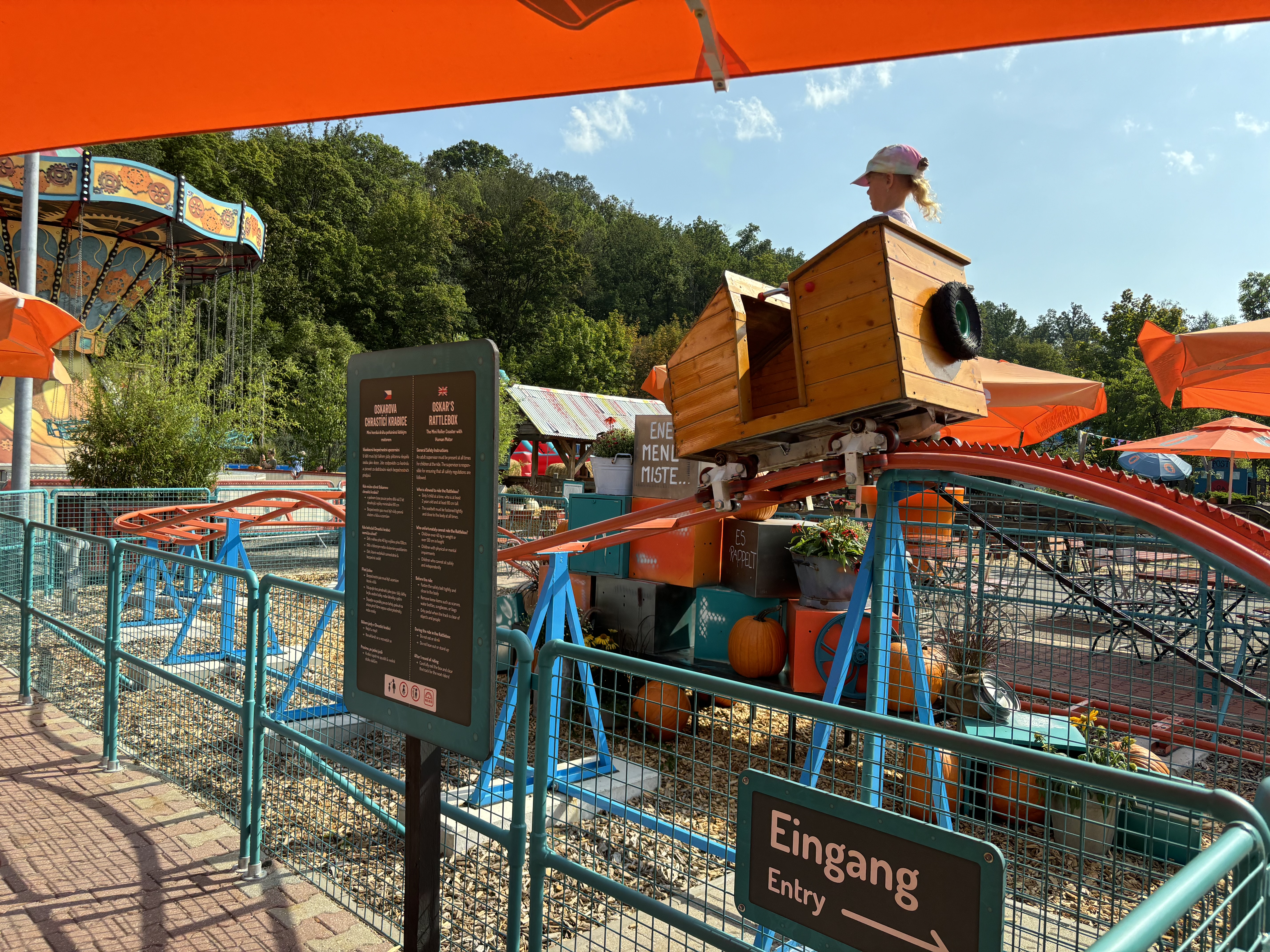 V Oskarshausenu najdeme i placené atrakce. Ty buď můžete platit po jedné, většina jich stojí 2-3 eura za jízdu, nebo si u vchodu pořídíte Fun pass za 12 euro na osobu a ten vám zajistí neomezený počet jízd po celý den. Dvanáct euro je zhruba 300 Kč, takže se zakoupení passu dle nás opravdu vyplatí. Pass vám stačí jen pro děti. Mezi atrakce, na které můžete použít Fun pass patří lízátková lavice, hrníčkový kolotoč uvnitř a venku řetízkový kolotoč, autíčkový kolotoč, horská dráha housenka, skok dolů a volný pád.