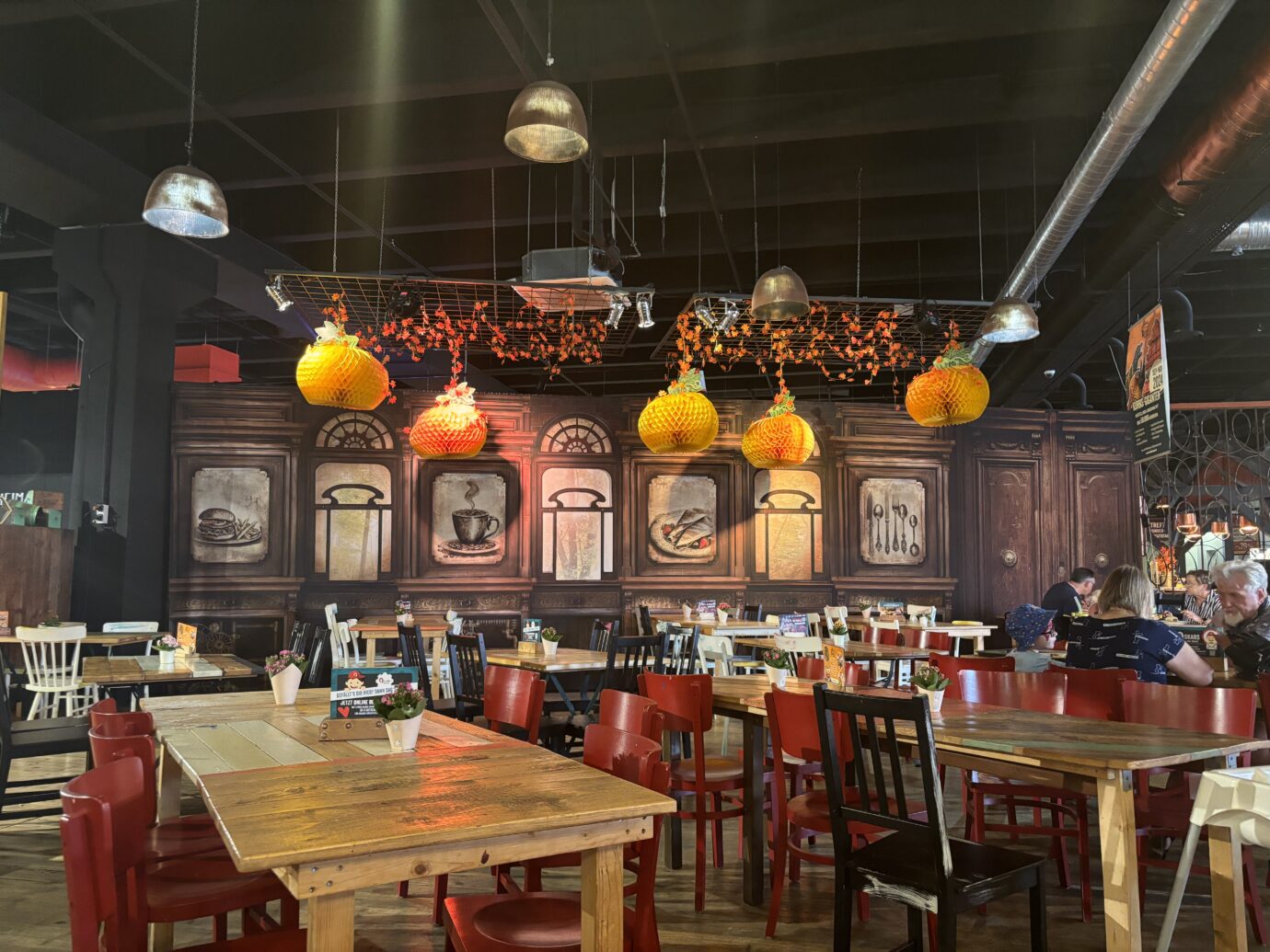 Když vás přepadne hlad, můžete se najíst v místní restauraci. Jídlo je na váhu a podávají se typické německé pokrmy, jako například vepřový řízek nebo uzené maso v omáčce. Jídlo jsme zkusili dvakrát a vždycky nám moc chutnalo. Za oběd pro rodinu o 4 členech jsme platili zhruba 30 euro.