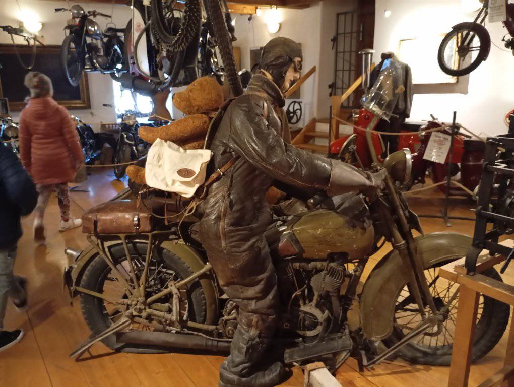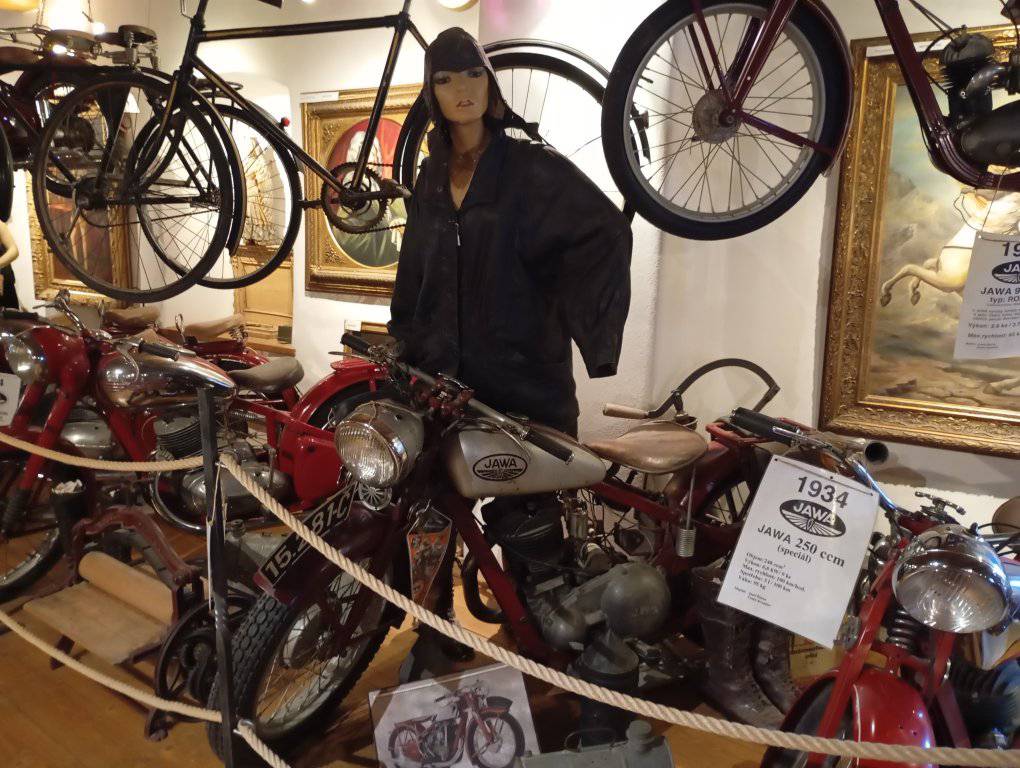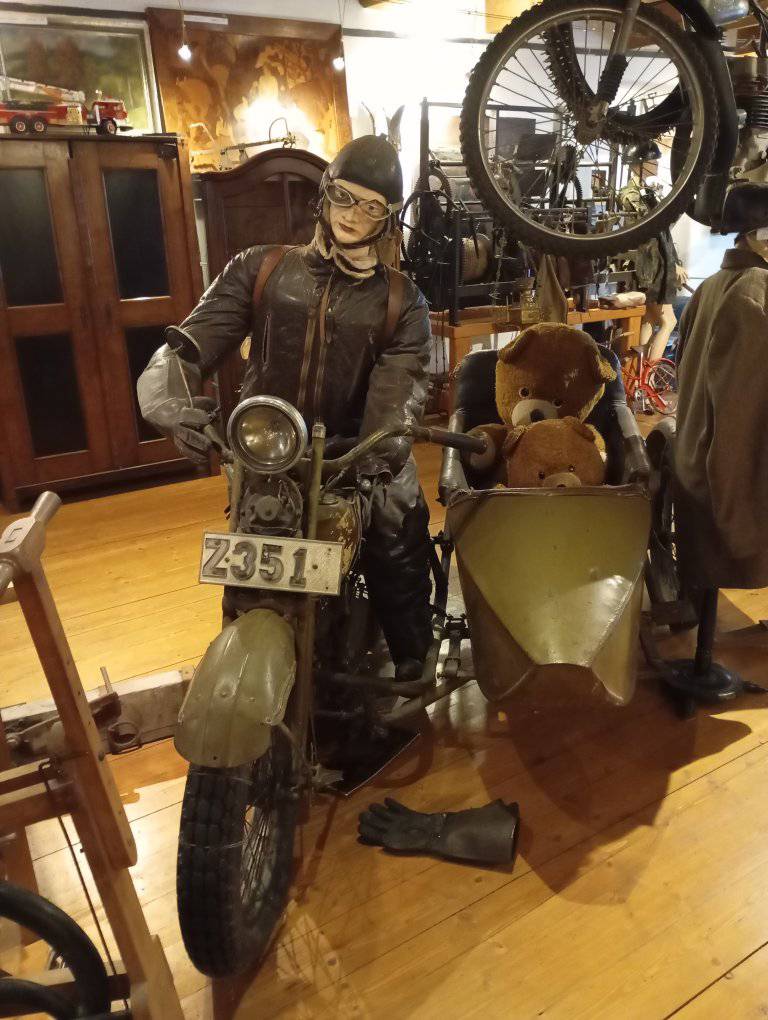 I když se oficiálně jedná o Muzeum historických motocyklů, nabízí mnohem více. Ve sbírkách je přes 20 motocyklů ve skvělém stavu, od českých i zahraničních značek. Na některých motocyklech jsou nainstalované figuríny, díky kterým i děti pochopí, jak se sedělo na motorce a k čemu sloužila sajdkára. U mých dětí měl největší úspěch motorista vezoucí dva plyšové medvědy v sajdkáře a jednoho měl zavěšeného místo batohu na zádech. Vypadalo to krásně a nostalgicky.