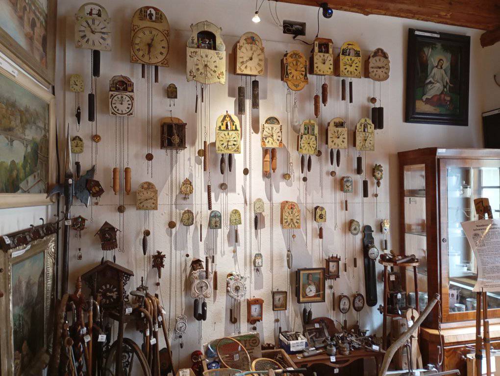 Kromě modelů motocyklů tu najdete i různé nářadí, plechovky od motorového oleje a vše možné, co souvisí s motocykly. Podkrovní prostor je věnován také prodejní galerii, kde najdete vystavené všemožné předměty. Nás se synem zaujala sbírka nástěnných hodin a dcera byla okouzlena sbírkou housliček. Syna však nejvíce zaujaly obrazy, které byly k prodeji. Některé historické, jiné moderní. Taková všehochuť. Je skutečně na co se dívat a pokud máte zbytečných pár tisíc, můžete si odnést i nějaký ten suvenýr.