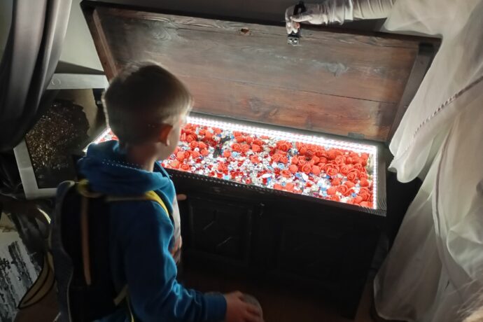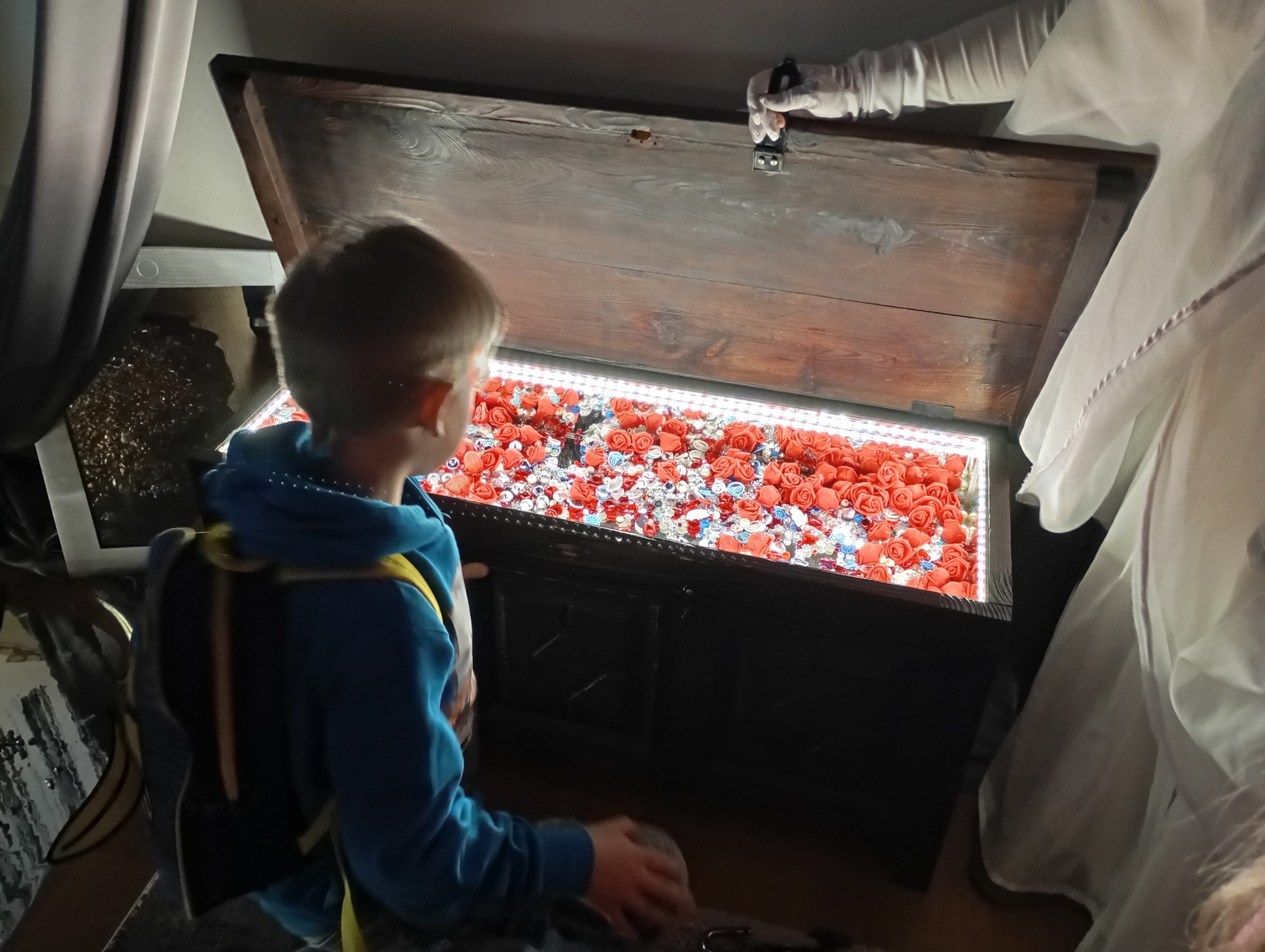 V Zámecké lékárně v Třeboni můžete navštívit celou řadu krásných prohlídek, které jsou pro děti naprosto ideální. My jsme si užili Prohlídku s Bílou paní Perchtou, kterou sehrála skvělá spisovatelka dětských knížek, Petra Braunová. Prohlídka byla určena dětem od 5 let a byla sestavena velmi poutavě. Děti se dozvěděly nejen o tom, jak lékárna vznikla a k čemu budova slouží, ale i o samotné Bílé paní. Kromě informací si děti vyzkoušely renesanční okruží a potěžkaly knihu, ze které se dříve četlo a učilo. V závěru prohlídky na ně čekala místnost s pokladem, odkud si mohly odnést drobnost na ukázku. Nadšené byly nejen děti, ale i rodiče.